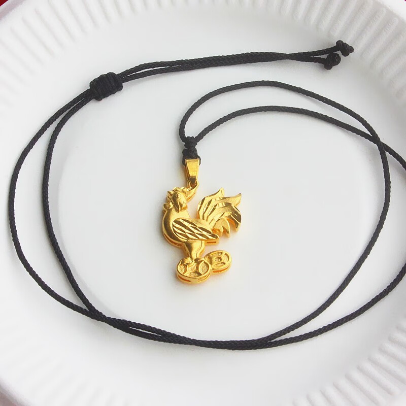 Qiansheng Yuan Lao Phoenix 999 original braided gold-plated rooster pendant 12 zodiac rooster coin necklace Vietnam sand gold male chicken Lao Fengxiang quality