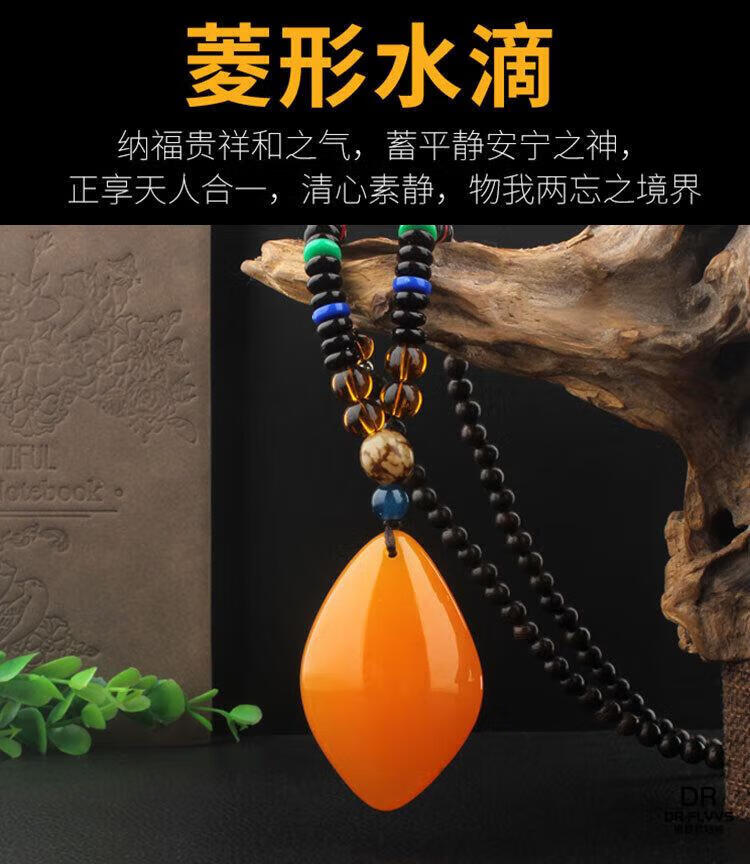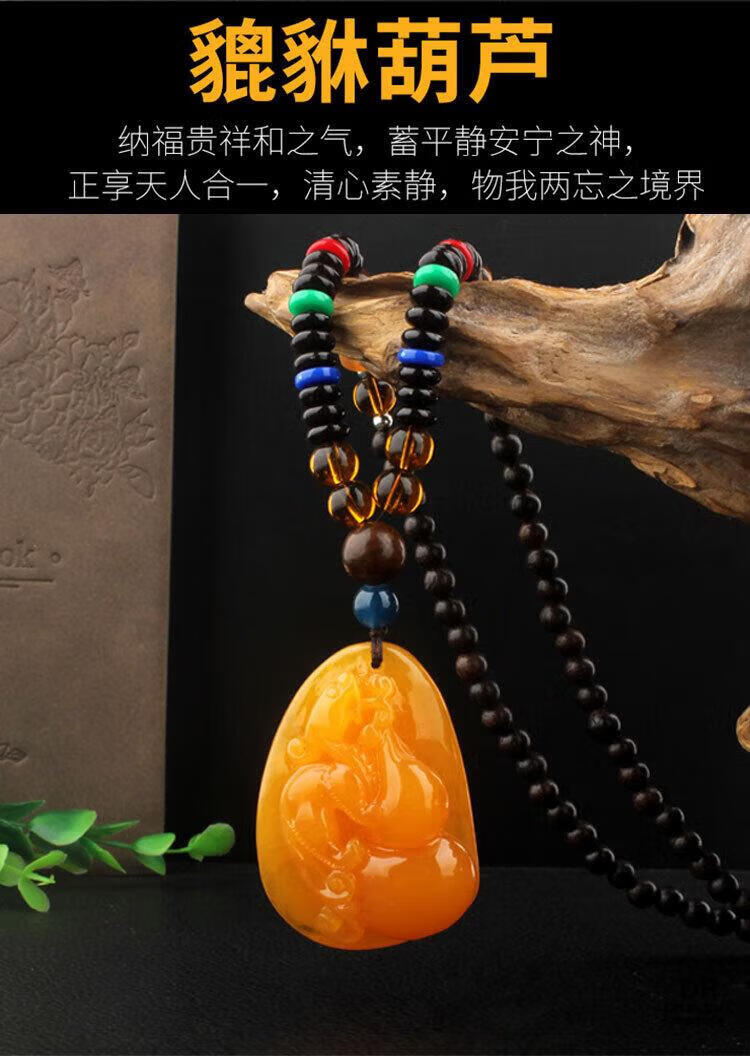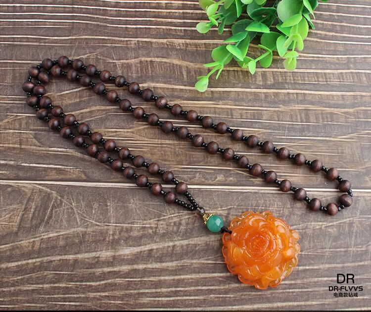 Fat Donglai Beeswax Pendant Retro Old Necklace Peace Buckle Gourd Long Sweater Chain Ethnic Fat Donglai Quality Peace Buckle Wooden Bead Chain