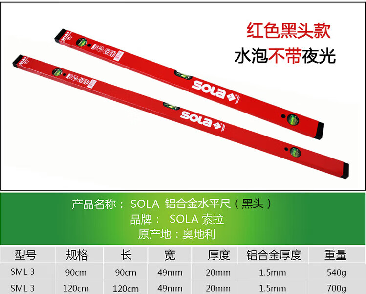 Austrian original high-precision spirit level AZB series red black head blue Orba luminous level black head SML3-90cm red model
