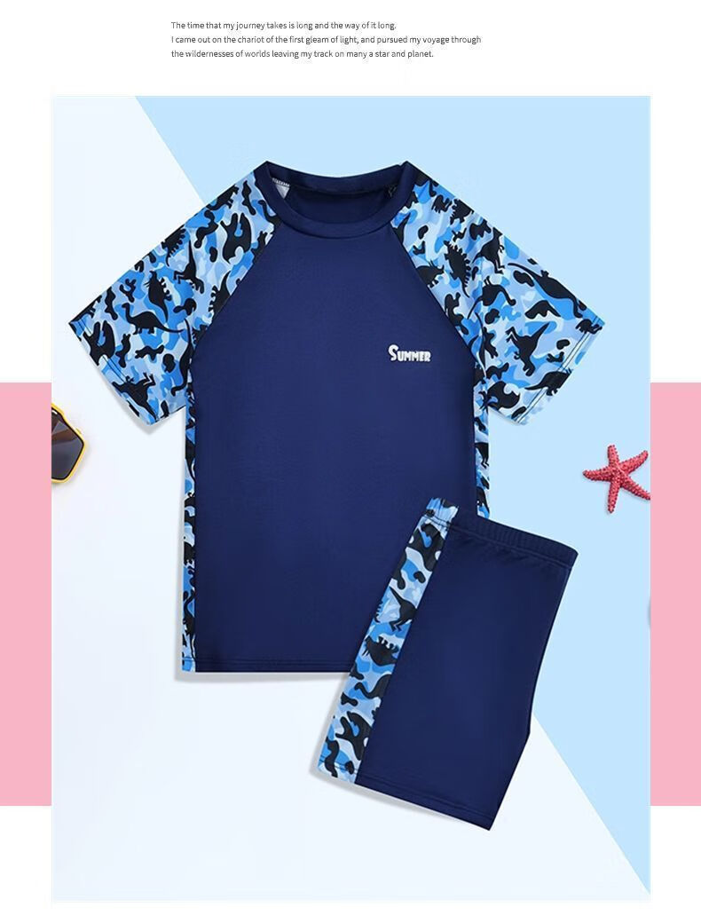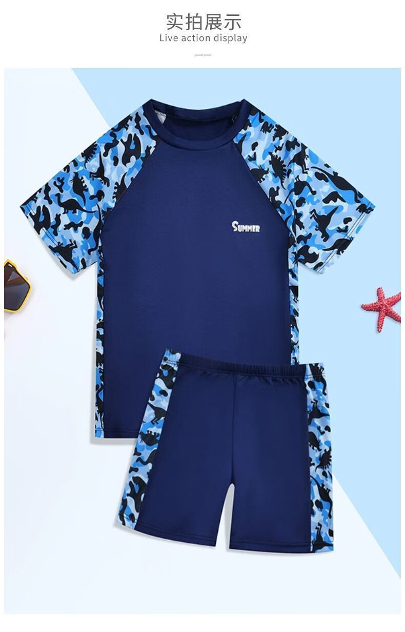 Chaomengcheng fat children's clothing boys' swimsuit split sun protection middle and large children and adolescents swimsuit and swimming trunks suit plus fat and enlarged dinosaur suit swimming goggles + swimming goggles nose clip earplugs 180 XL size recommended 80-100Jin Jin equals 0.5 kg