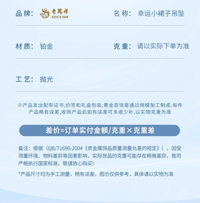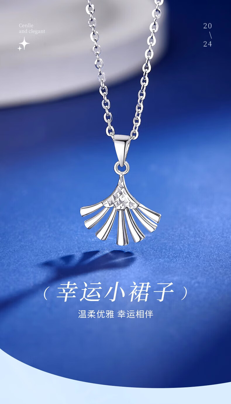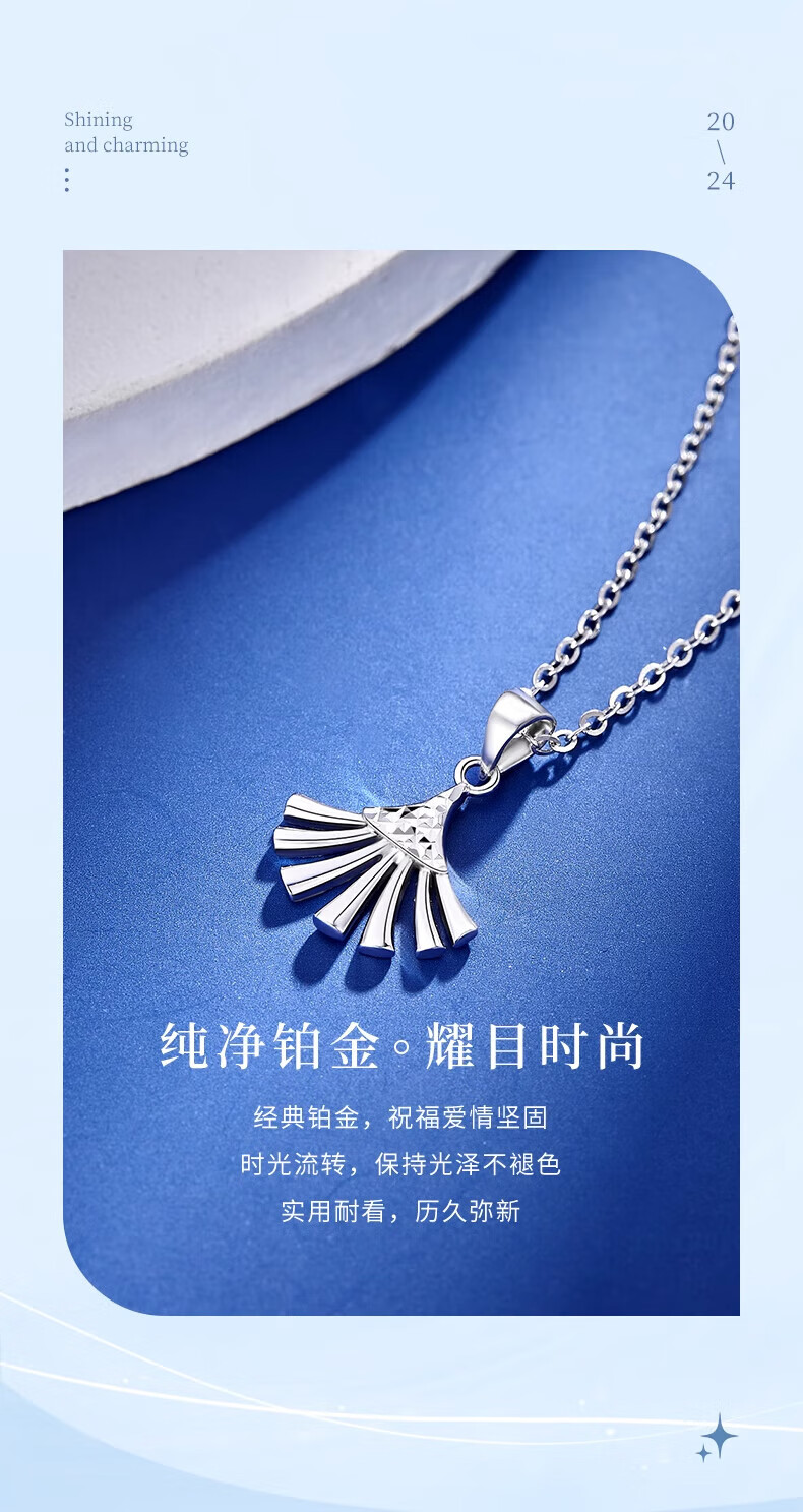 Lao Fengxiang PT950 platinum small skirt pendant for women, platinum clavicle chain, Mid-Autumn Festival birthday gift for girlfriend, wife, small skirt platinum pendant, about 1.9g, free silver chain