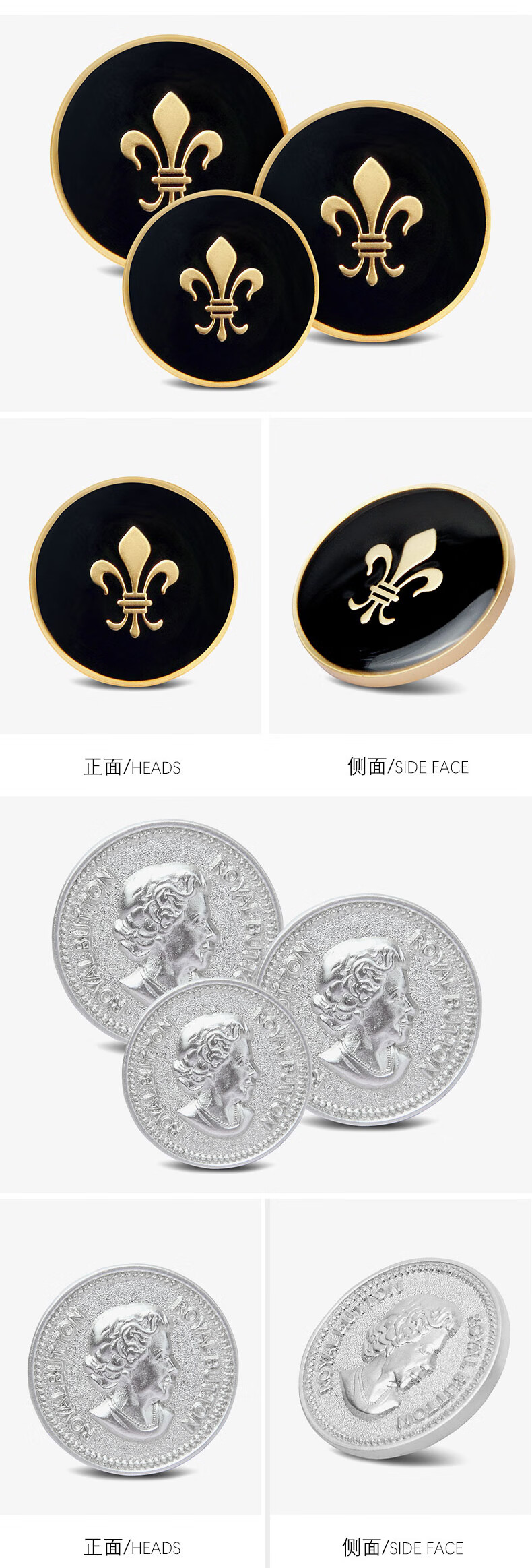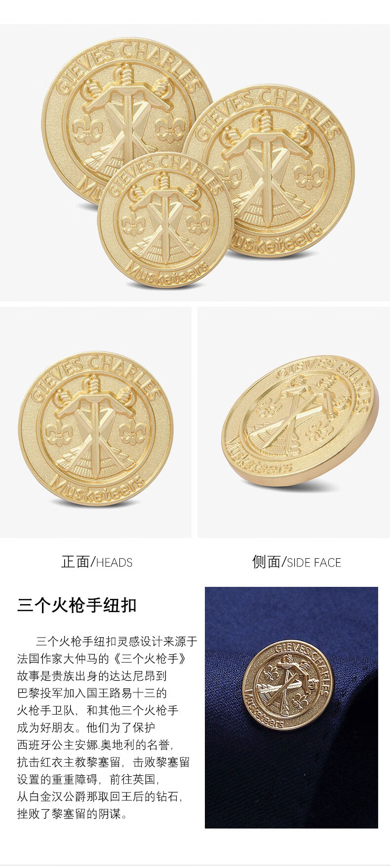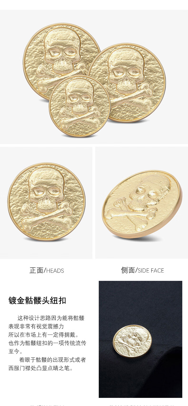 GIEVES CHARLES24K gold-plated embossed gold buttons, men's suit coat gold-plated buttons, two skulls (suit placket)