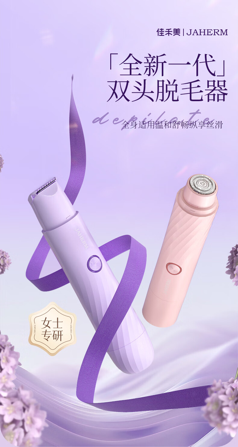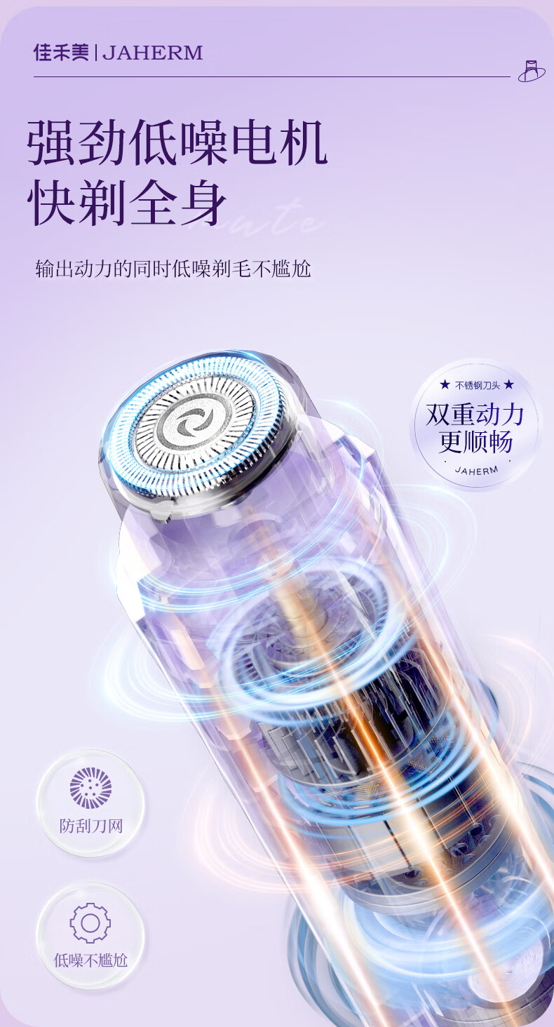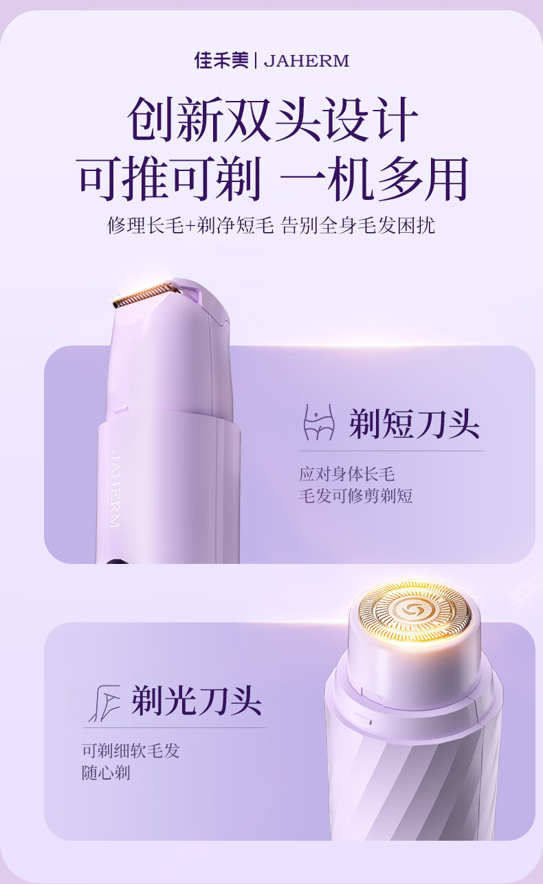 Jiahemei electric shaver, private part hair removal device for men and women, private shaver, armpit and pubic hair trimming machine, whole body razor, armpit hair shaving artifact, 1 taro purple, safe double heads + private delivery + exquisite packaging