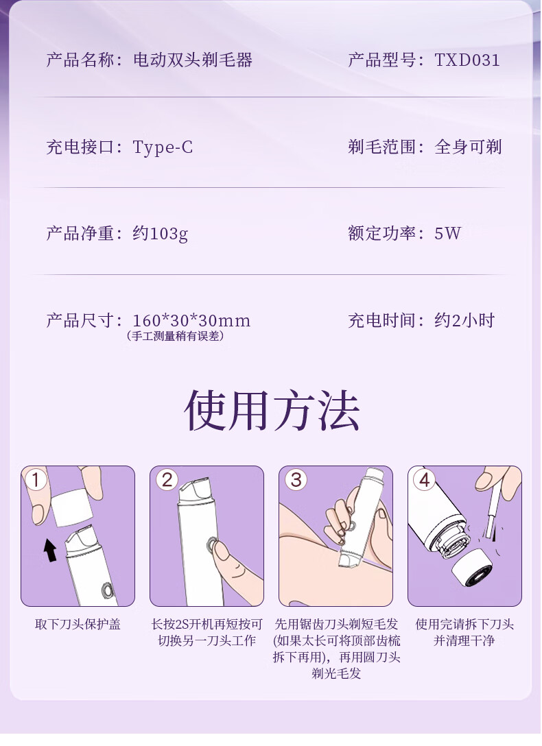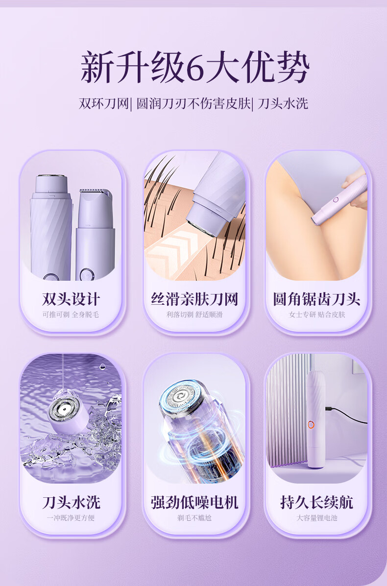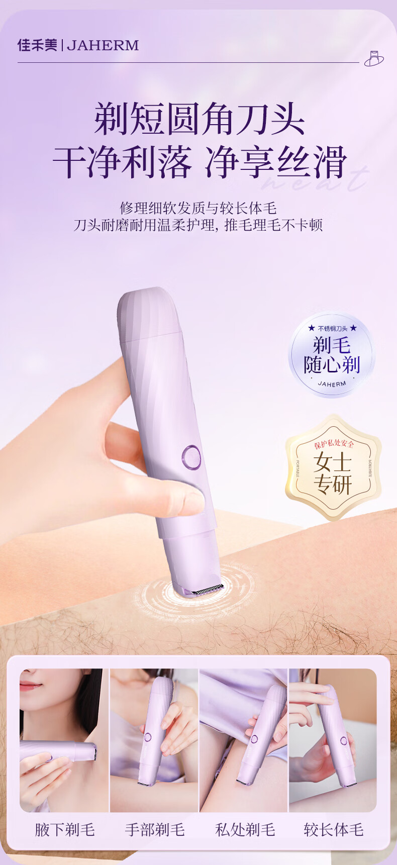 Jiahemei electric shaver, private part hair removal device for men and women, private shaver, armpit and pubic hair trimming machine, whole body razor, armpit hair shaving artifact, 1 taro purple, safe double heads + private delivery + exquisite packaging