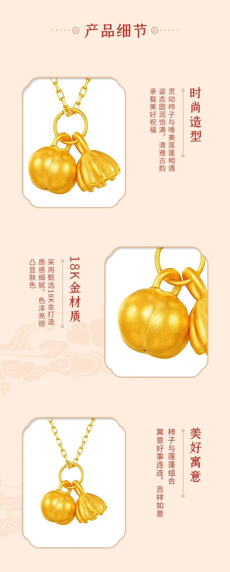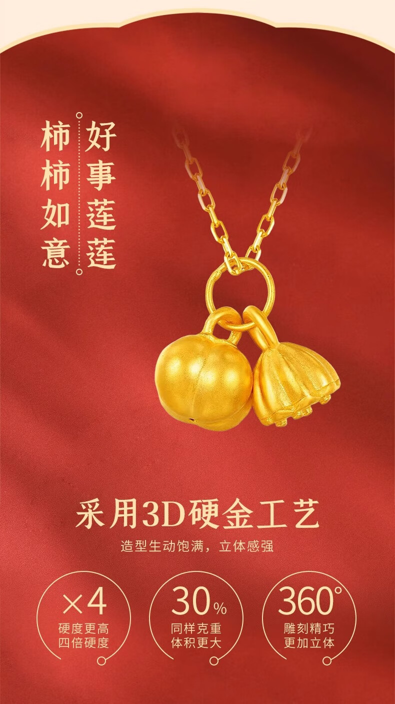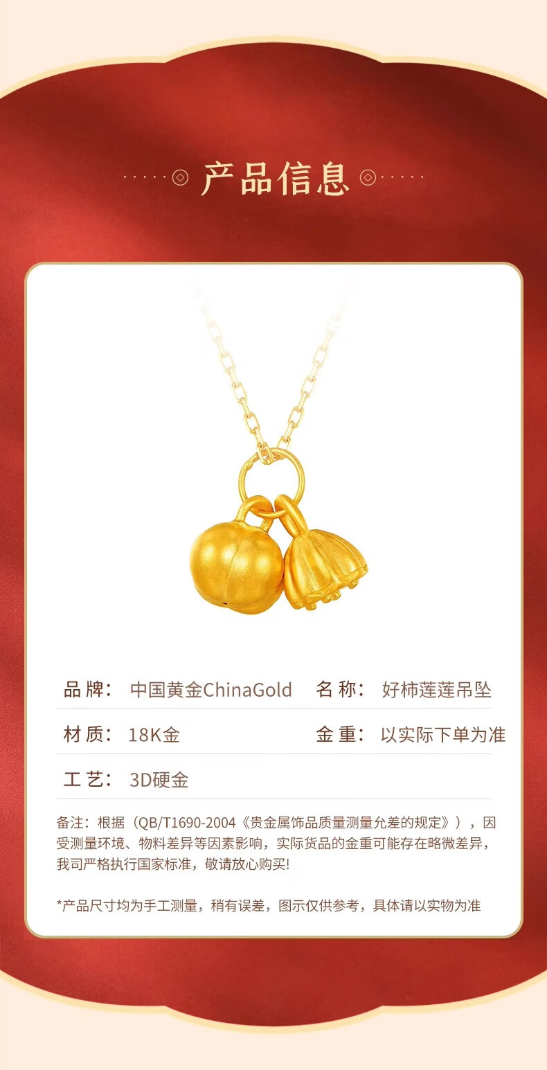 CHINA GOLD 18K Gold Necklace Good Shilian Lotus Pendant Persimmon Pendant Clavicle Chain Valentine's Day Birthday Gift for Girlfriend 18K Gold Good Shilian Lotus Pendant - About 0.35g Free Silver Chain