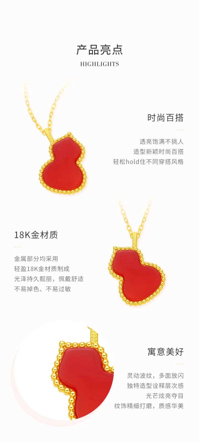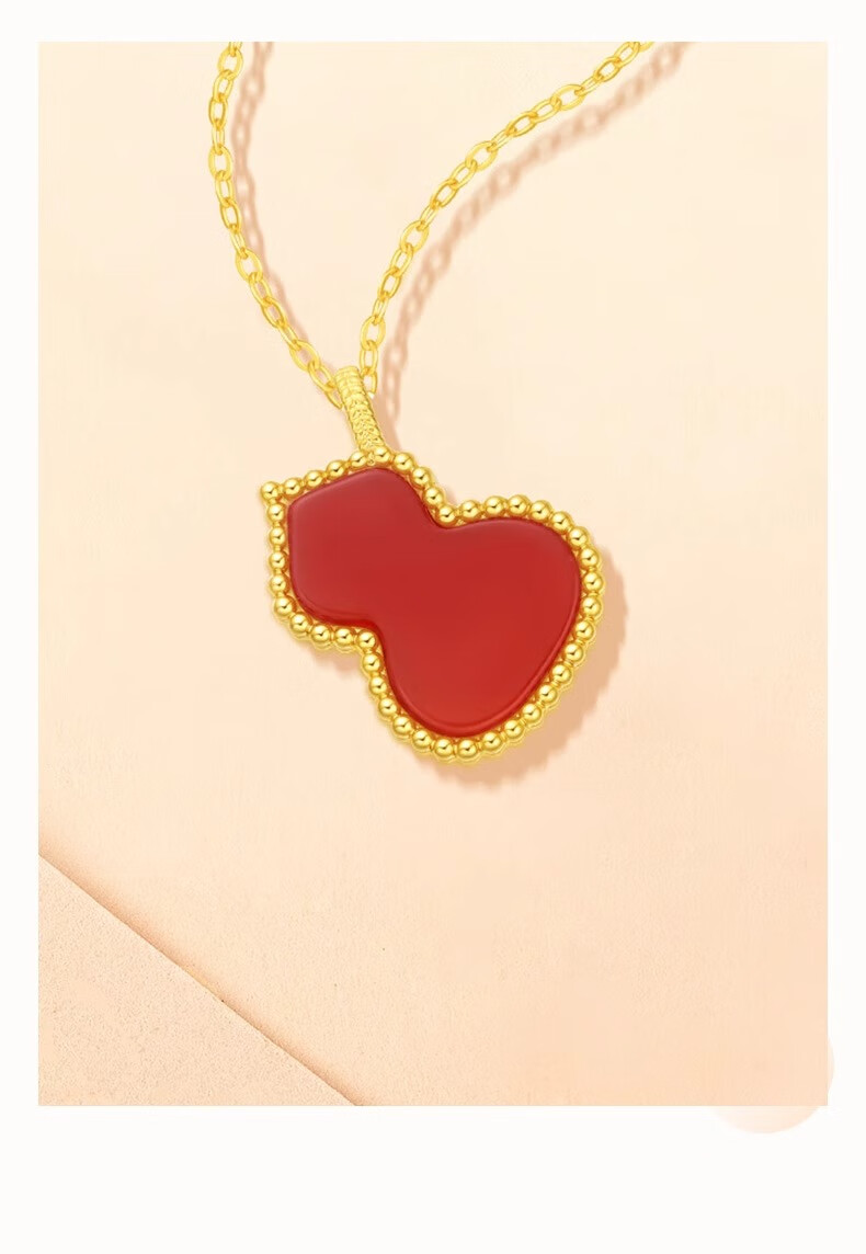CHINA GOLD 18K gold necklace gourd pendant Fulu clavicle chain jewelry Valentine's Day birthday gift for girlfriend and wife 18K gold gourd pendant - about 0.6g free silver chain gram weight is the total weight of the product K gold weight + topaz / others