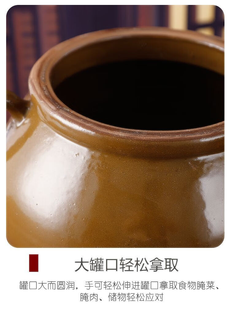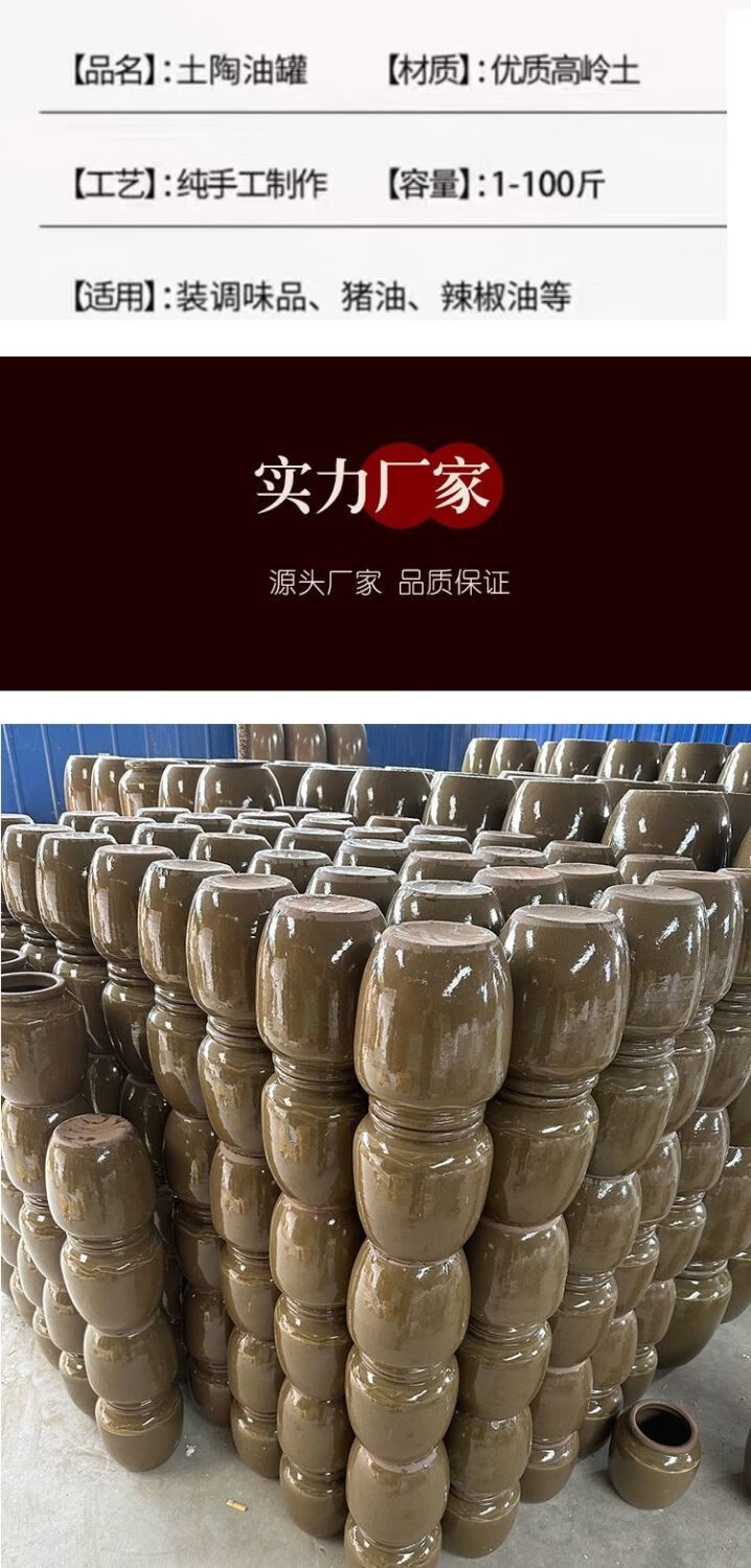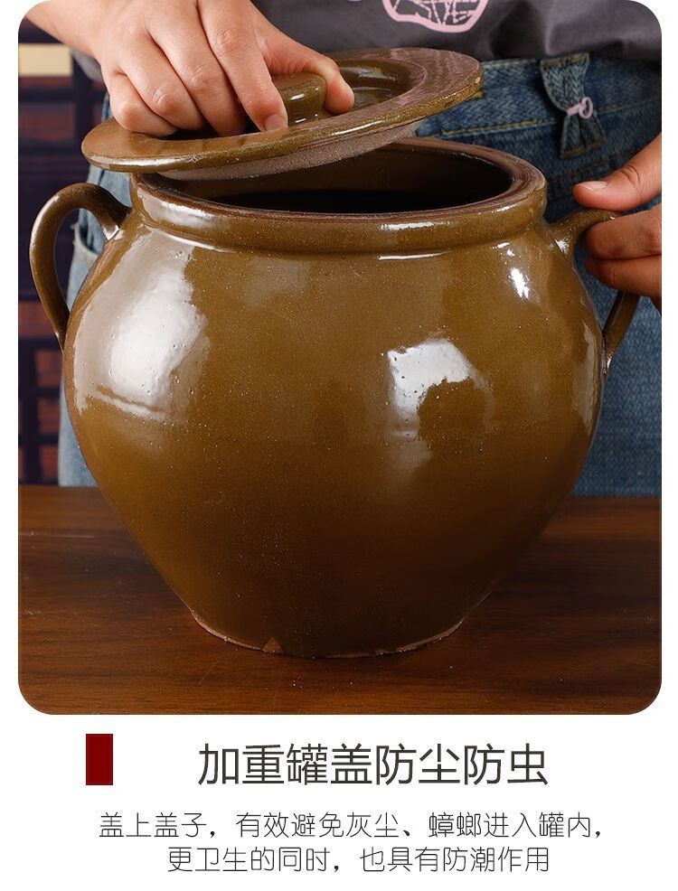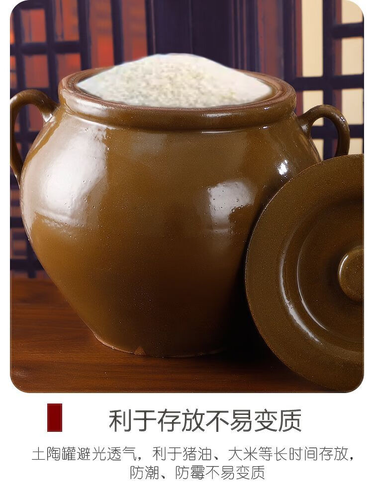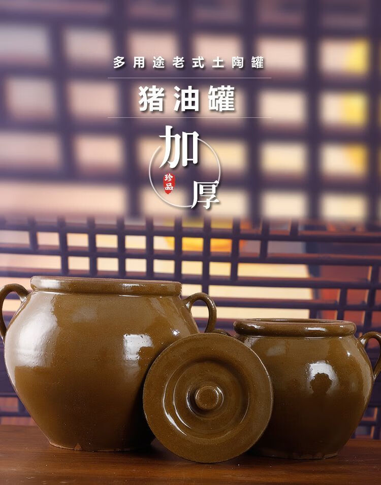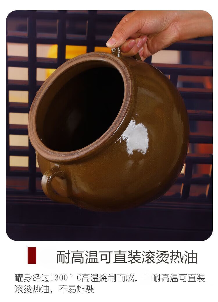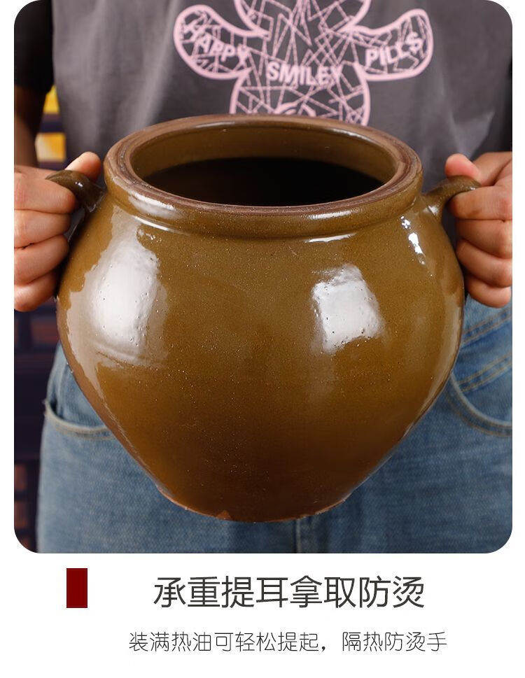 An Junsheng lard jar, old-fashioned clay pottery with lid, household ceramic jar, high temperature resistant oil jar, large capacity pickle jar, sauce jar, double lifting ears, water capacity 5Jin Jin is equal to 0.5kg