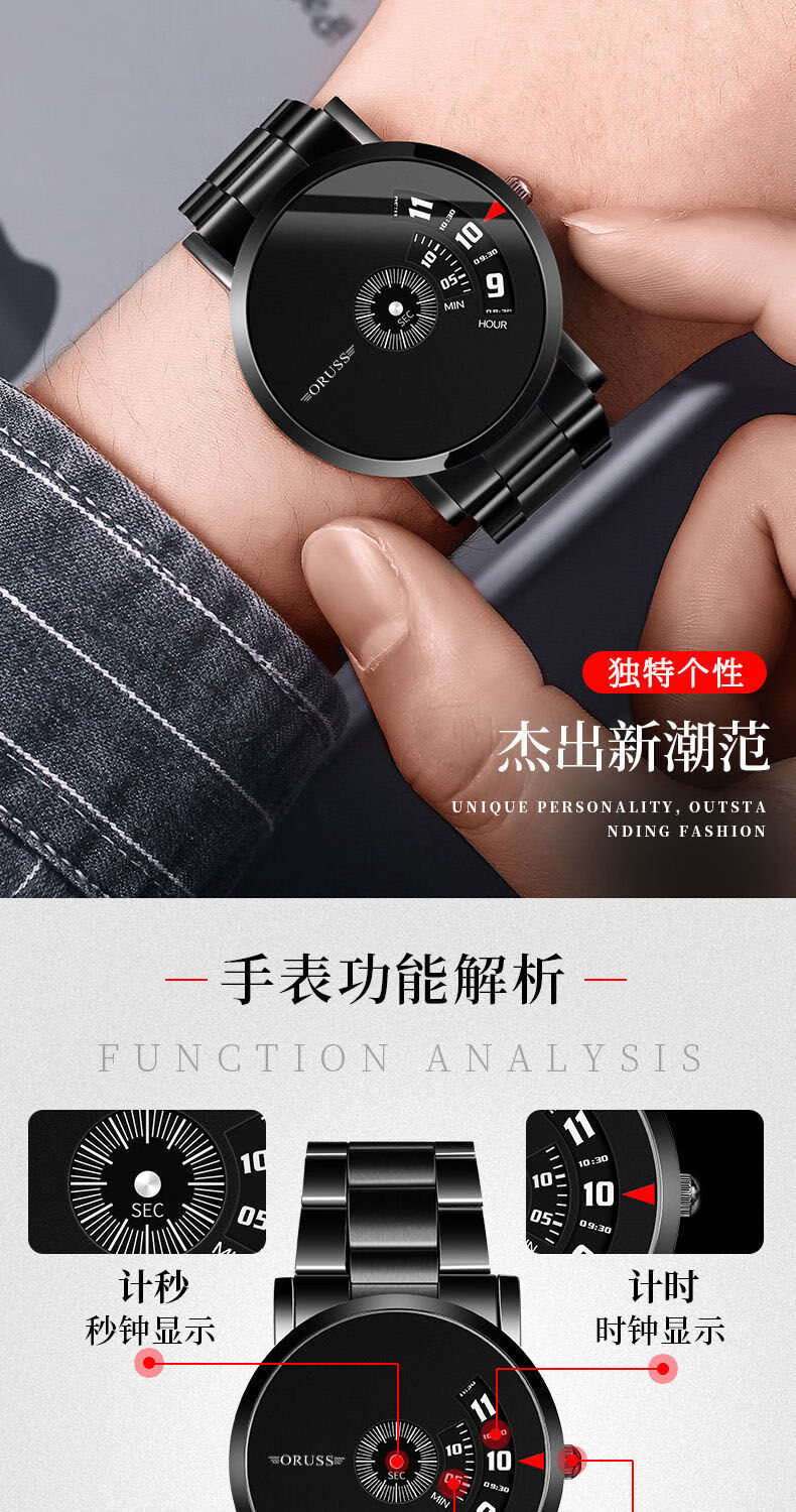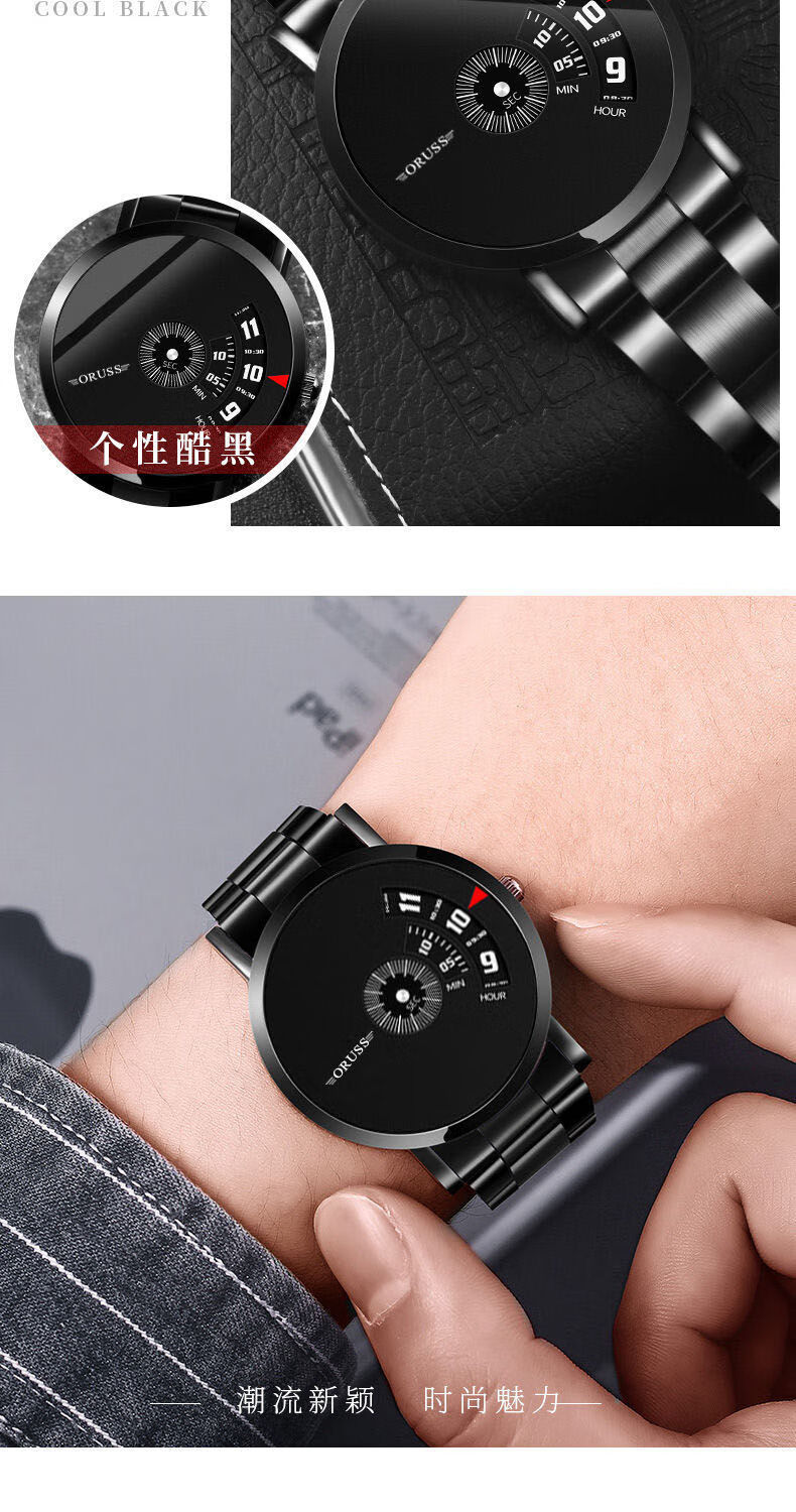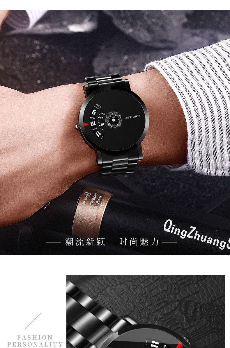 (0.01) Fully automatic movement mechanical quartz watch men's watch Korean version simple waterproof fashion watch new concept new concept - black belt blue surface steel belt