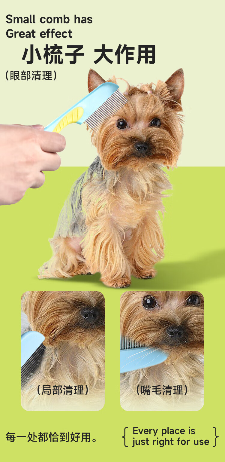 Star Wonderful Yorkshire comb dog pet combing artifact facial comb to remove fleas small row comb mouth hair beauty special blue and yellow 2 short-tooth small facial comb (long and short style)