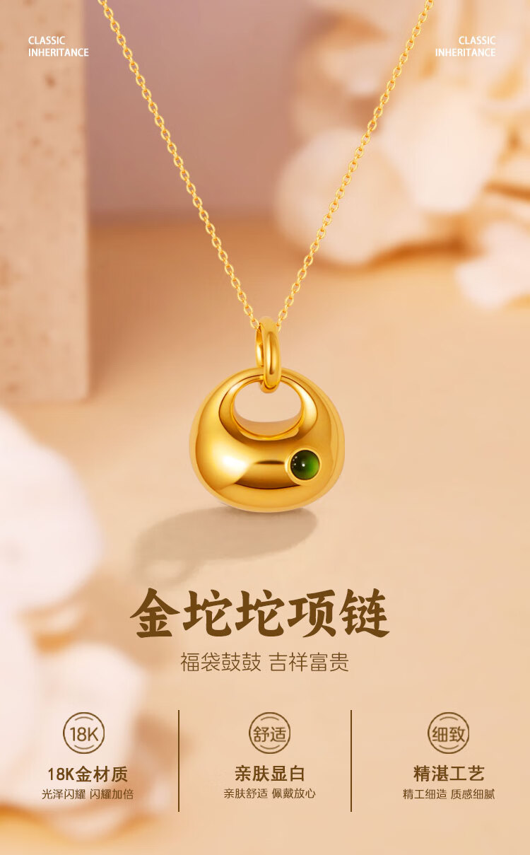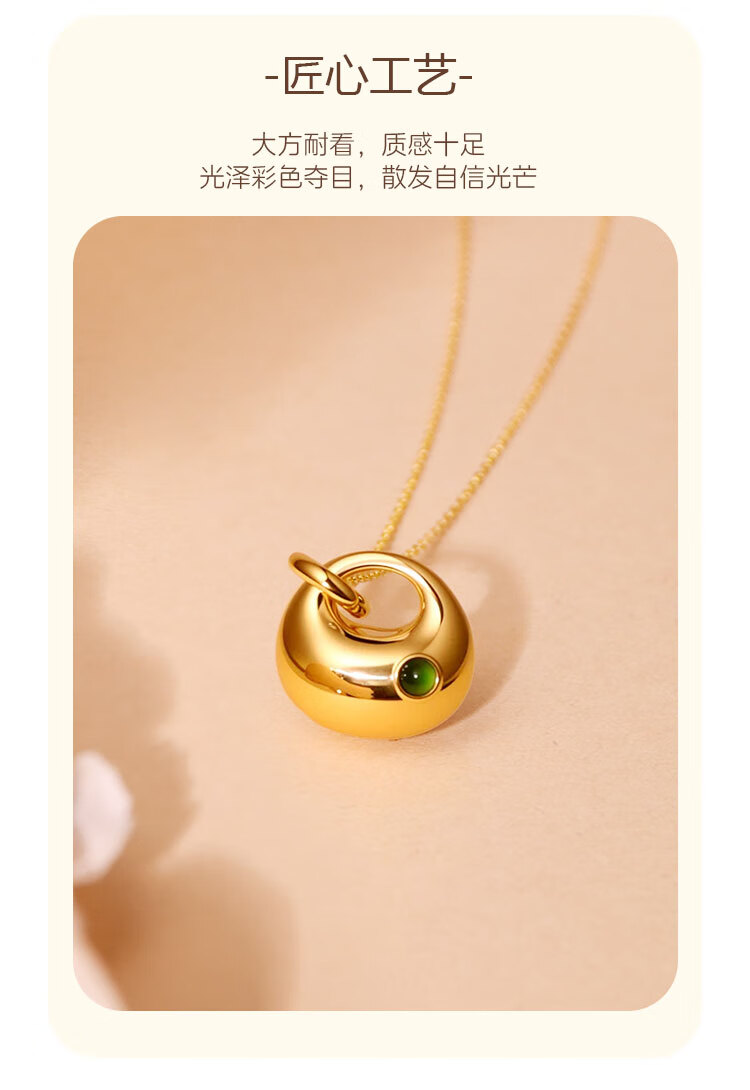 CHINA GOLD 18K gold necklace for women, light luxury, niche design, jade fat pendant, holiday birthday gift for girlfriend and lover, 18k jade fat pendant, with S925 silver chain