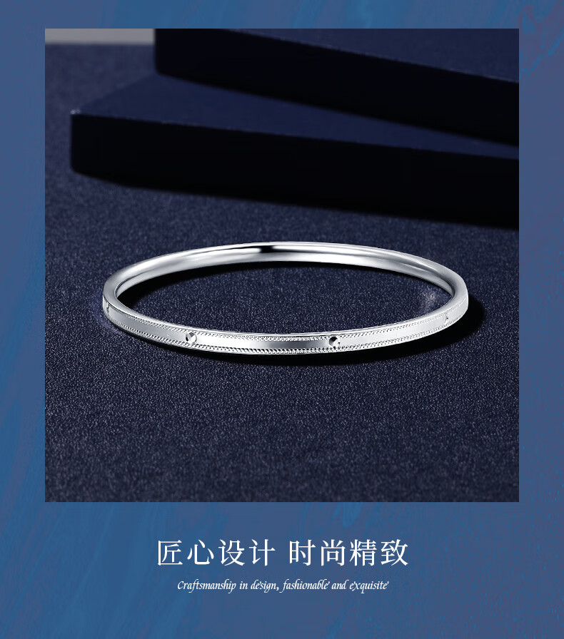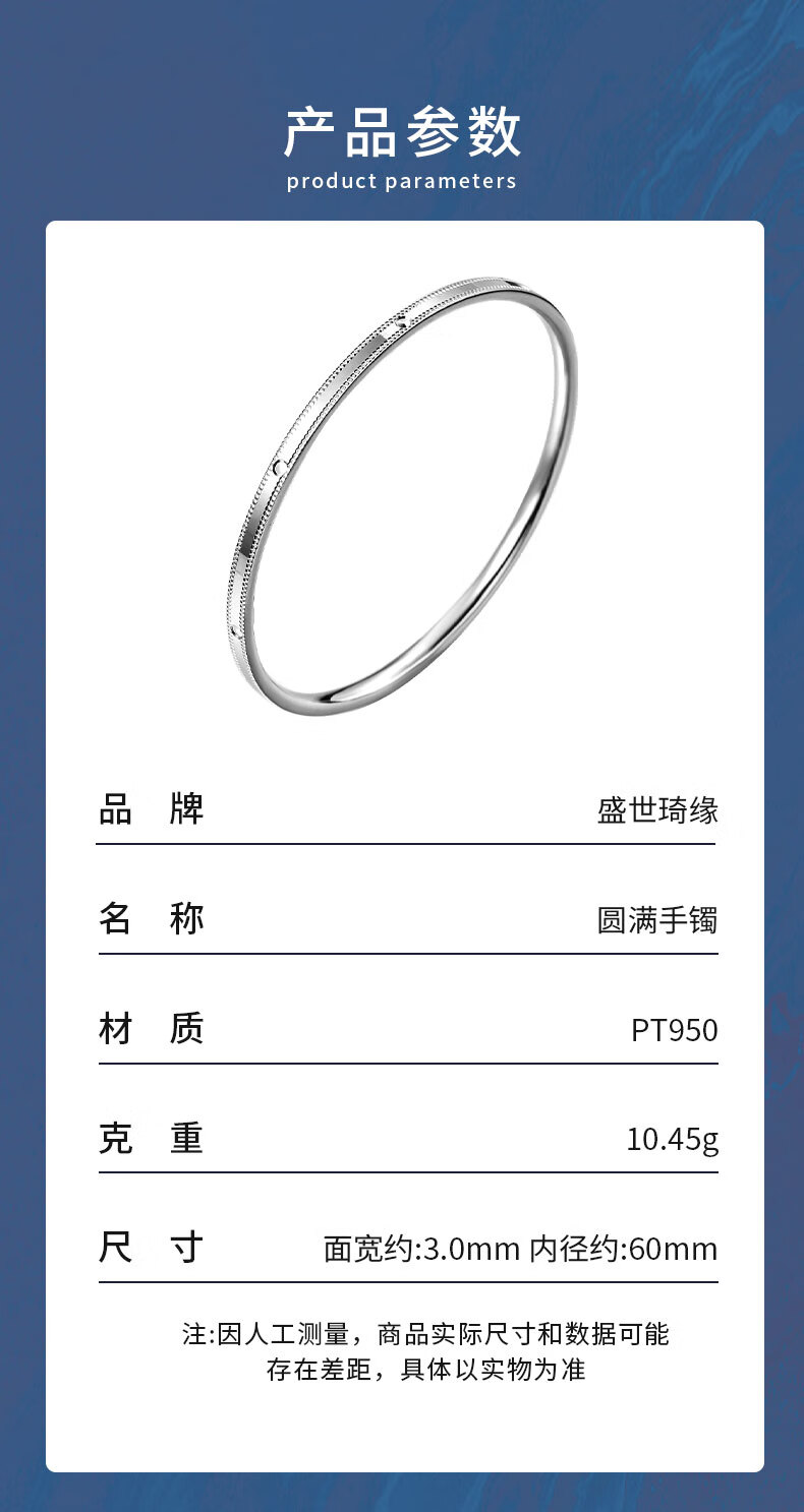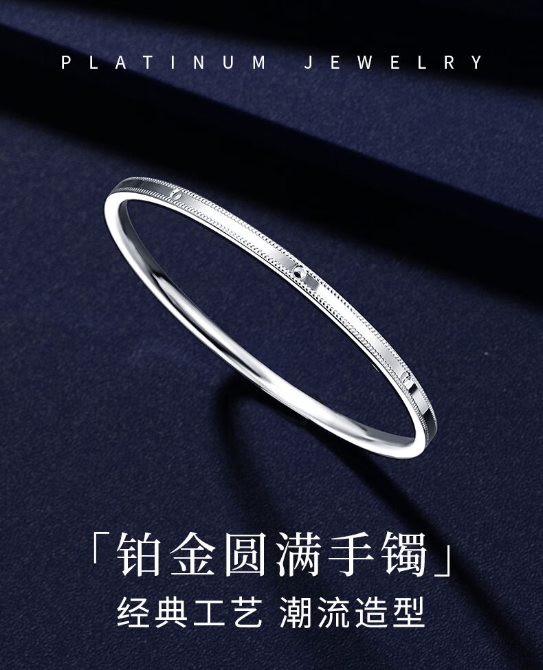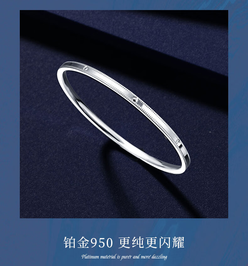 Shengshi Qiyuan platinum bracelet for women pt950 platinum bracelet for women genuine new pure platinum perfect bracelet semi-solid round inner diameter 52mm/9.74g/width 3mm