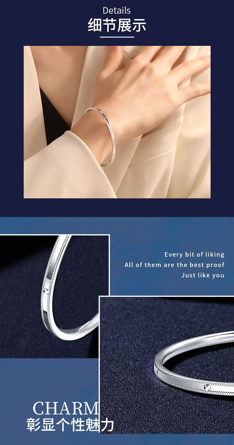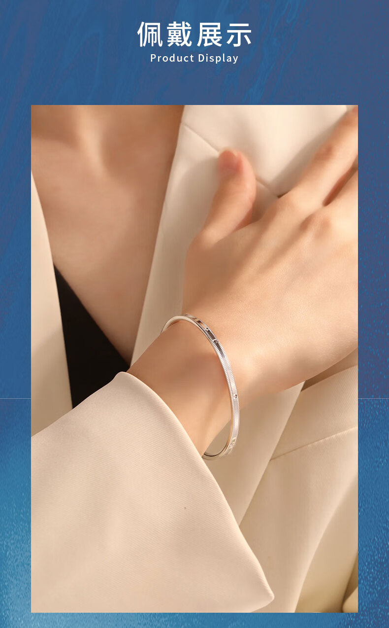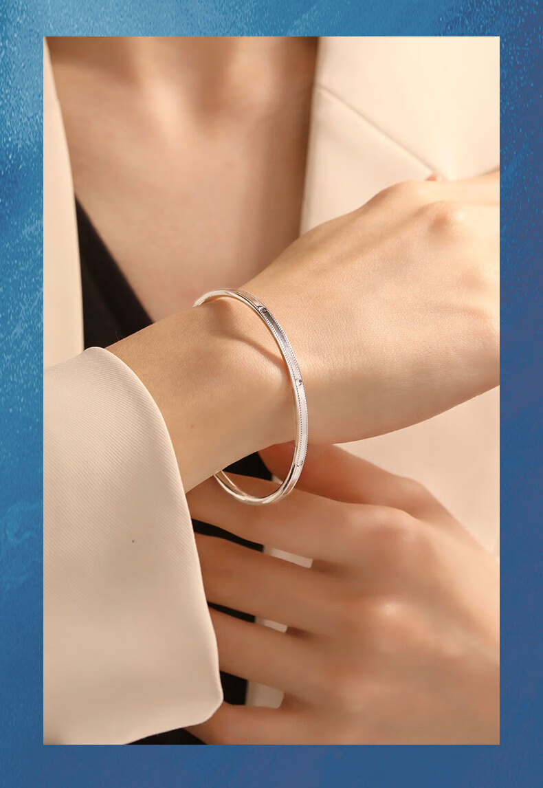 Shengshi Qiyuan platinum bracelet for women pt950 platinum bracelet for women genuine new pure platinum perfect bracelet semi-solid round inner diameter 52mm/9.74g/width 3mm