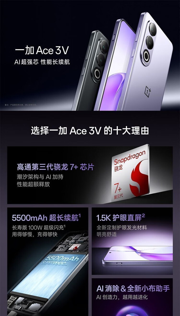 OnePlus Exhibition Machine OnePlus Ace 3V Full Netcom 5G Third Generation Snapdragon 7+ 100W Super Fast Charging Gaming Smartphone Titanium Air Gray 12GB+256GB Activation+Branded Fast Charging+One Year Warranty