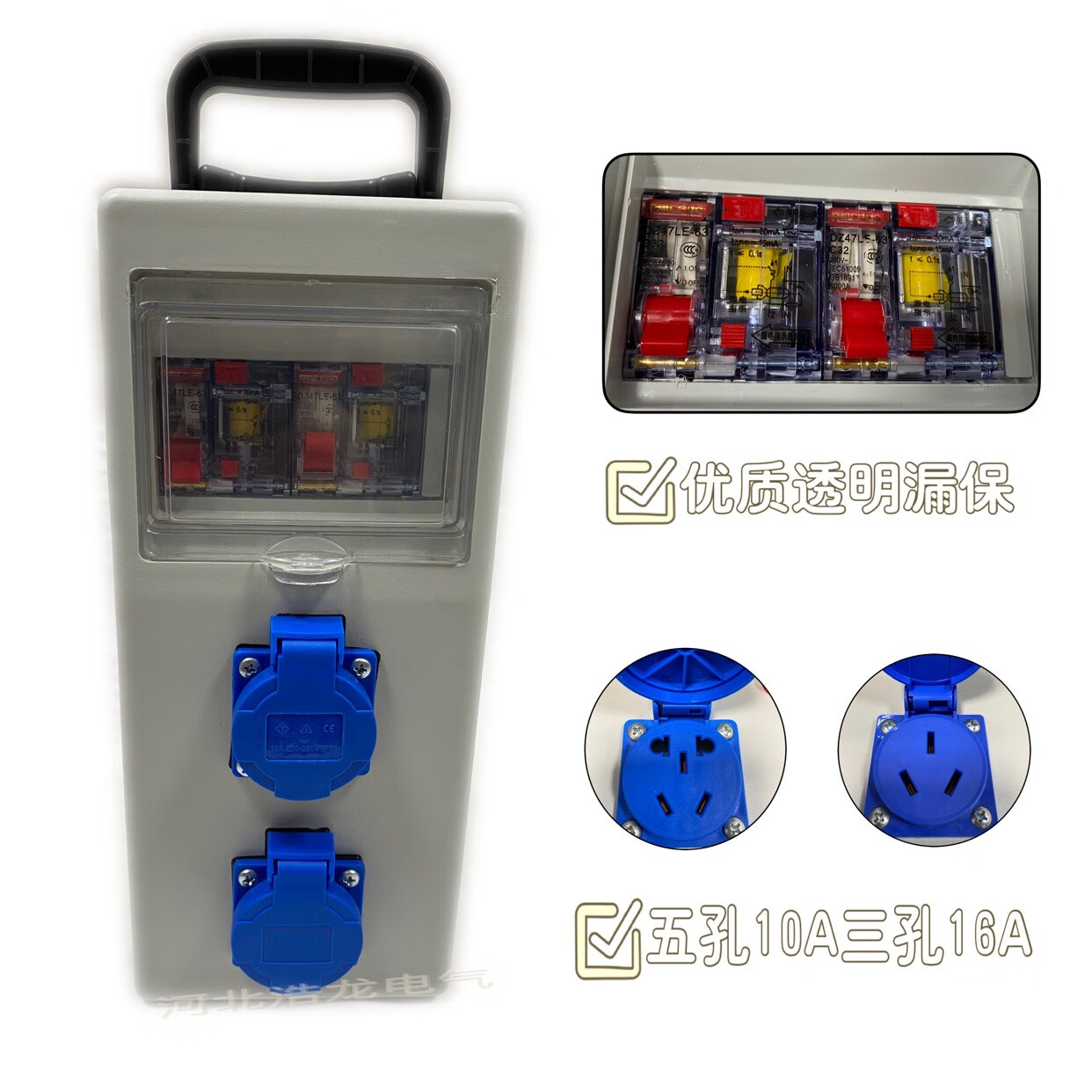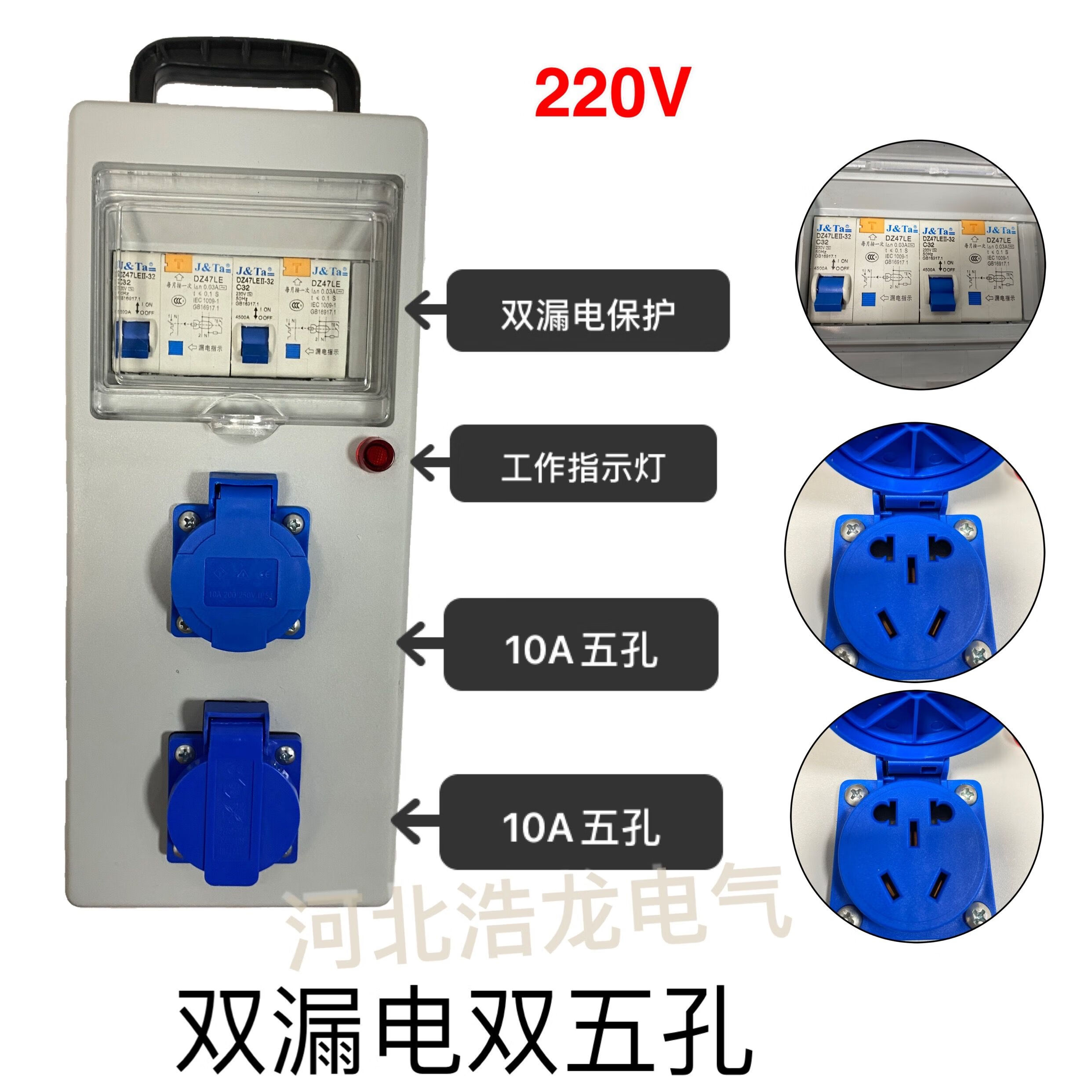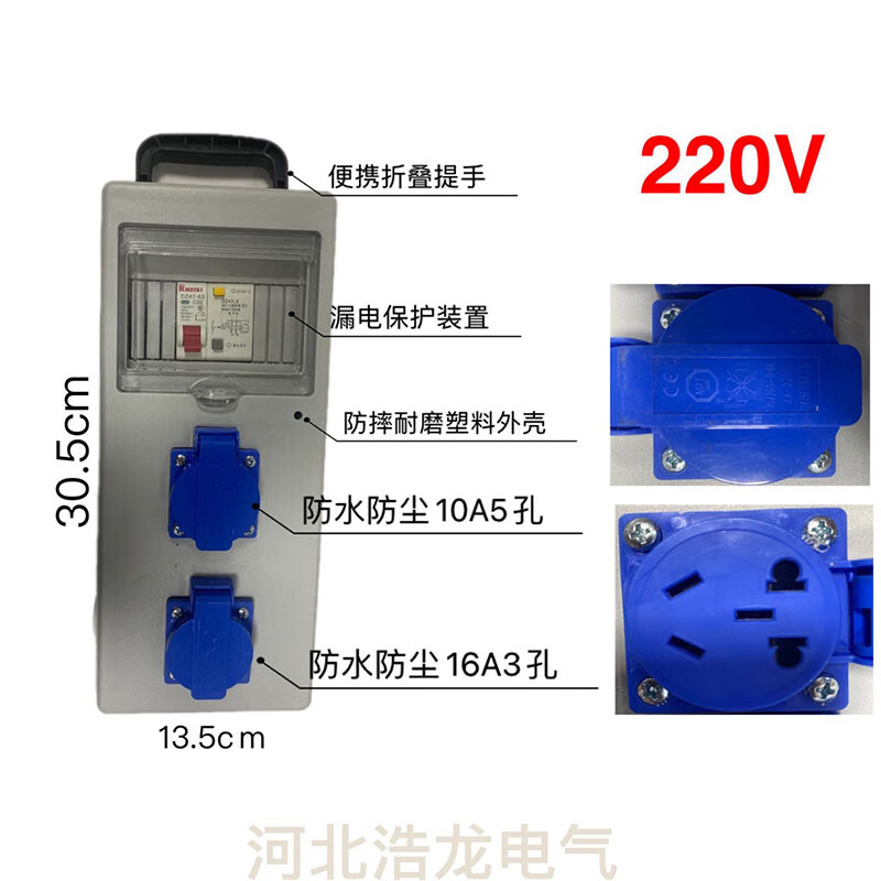 Портативная защита от падения, водонепроницаемость, перегрузка, мобильная строительная площадка, трехуровневая распределительная коробка, розетка с двойной защитой от утечек, 220 В, гарантия на одиночную утечку, пять отверстий, 10 А