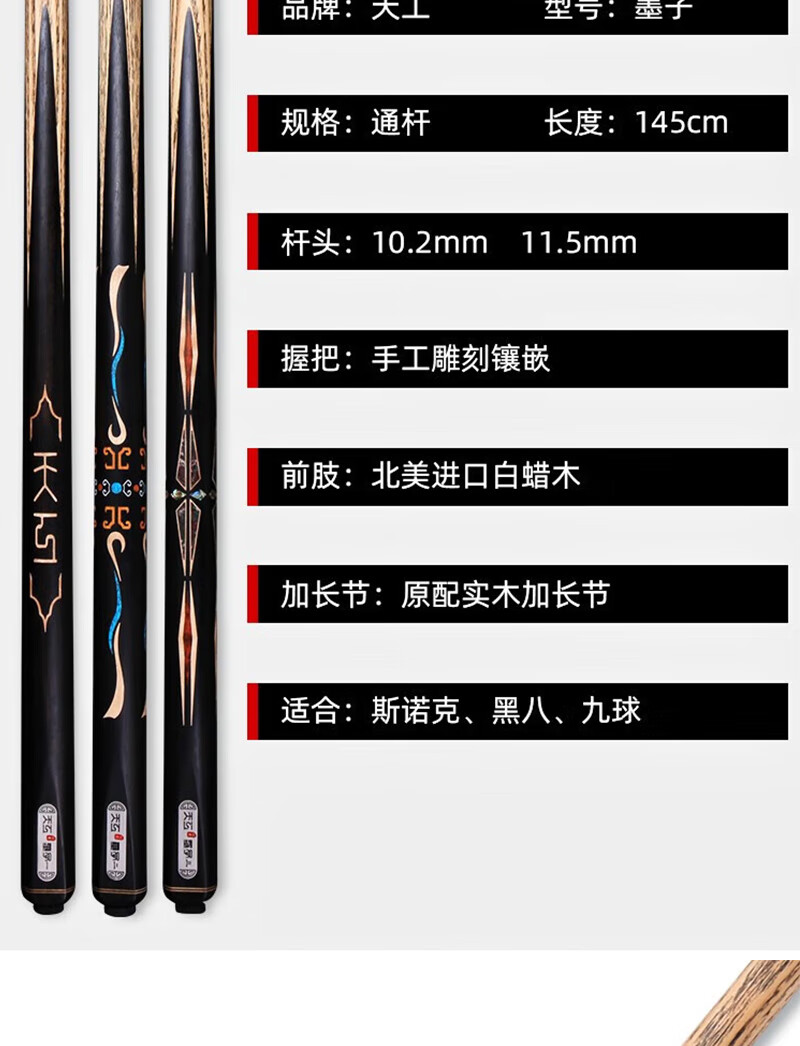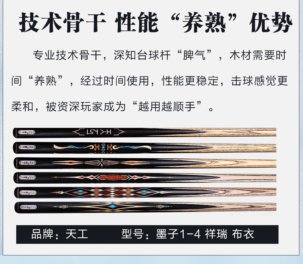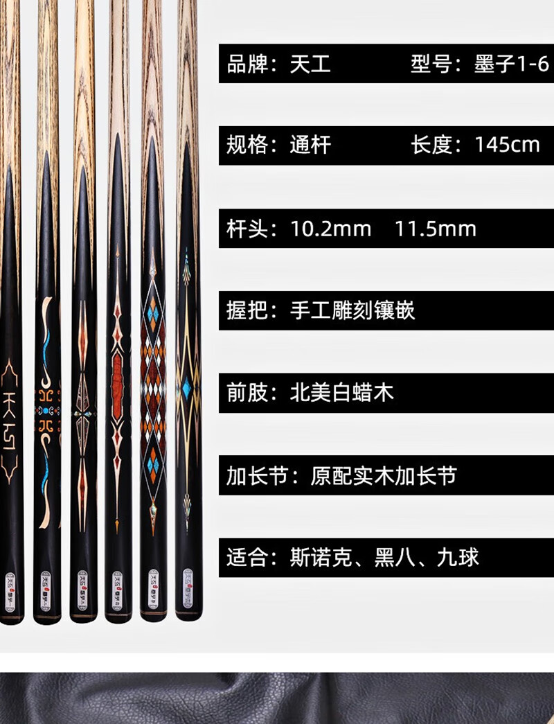 Hengyi Tiangong Mozi 1234 one, two, three and four table cue small head Chinese black eight 8 snooker table cue 95 new (rod box set) Tiangong Mozi one