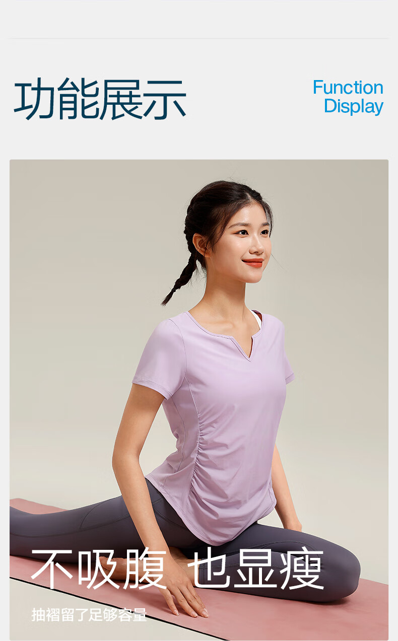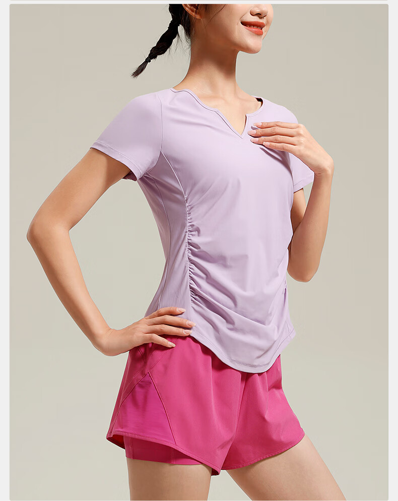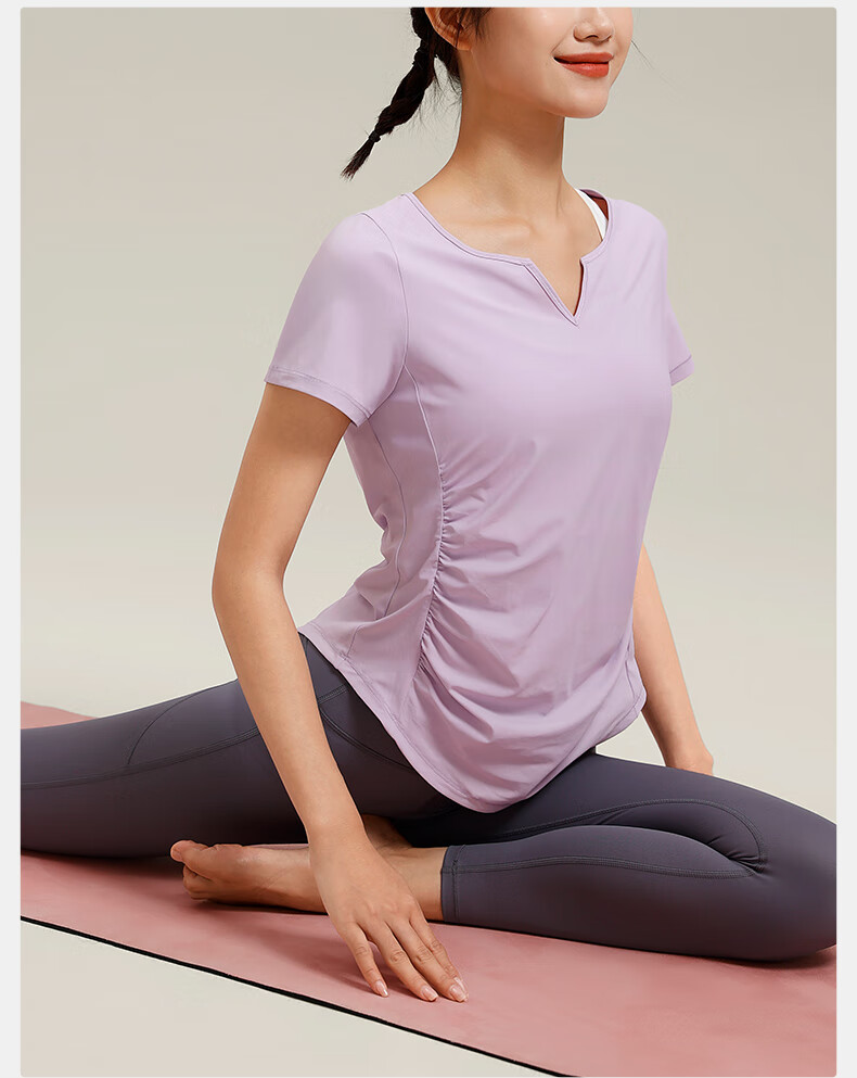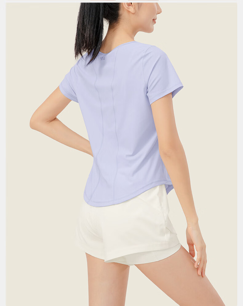 VFU new product small waist summer yoga wear women's short-sleeved fitness tops Pilates training clothes running transparent glazed purple-cool and quick-drying-TT45046A M _ Recommended 50-55kg