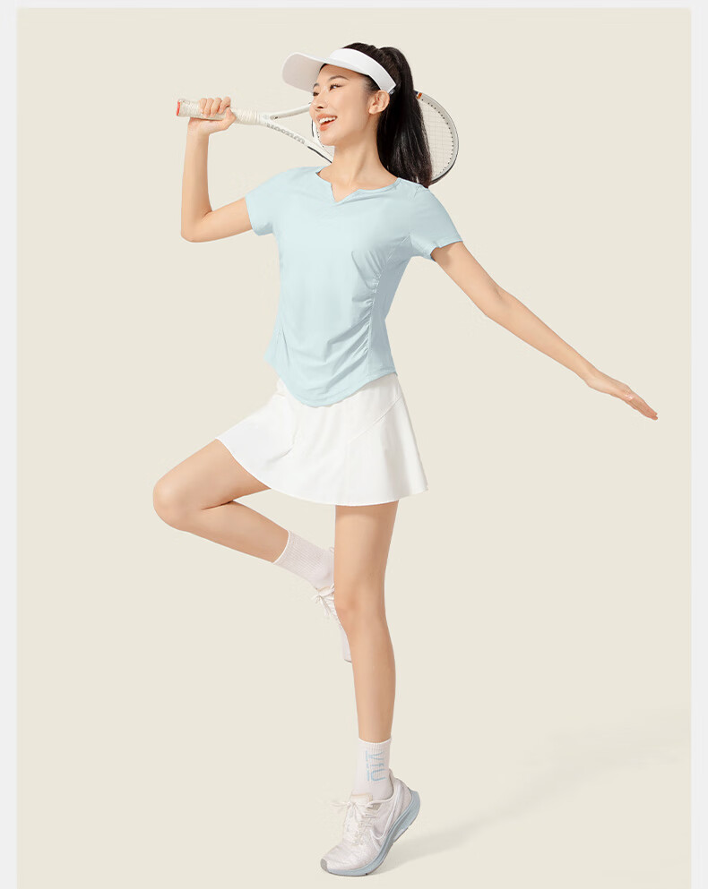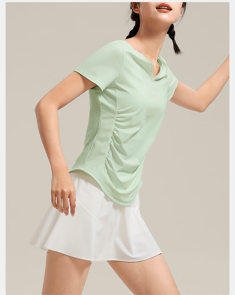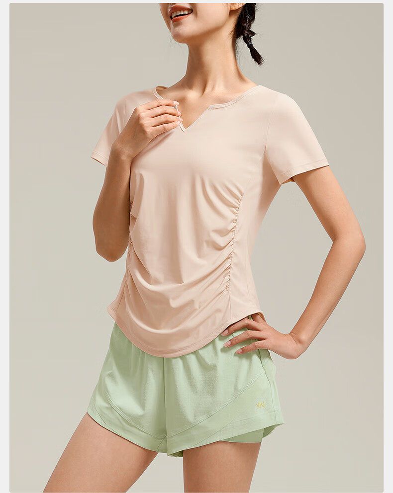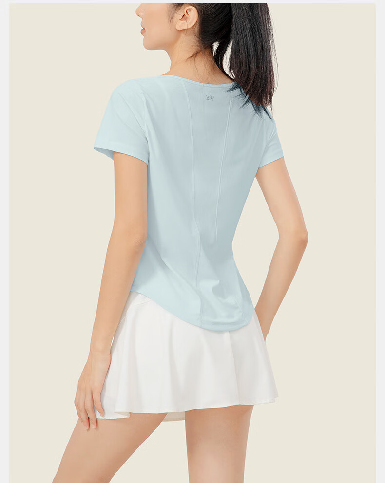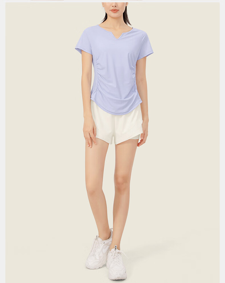 VFU new product small waist summer yoga wear women's short-sleeved fitness tops Pilates training clothes running transparent glazed purple-cool and quick-drying-TT45046A M _ Recommended 50-55kg