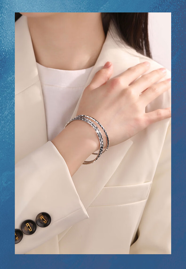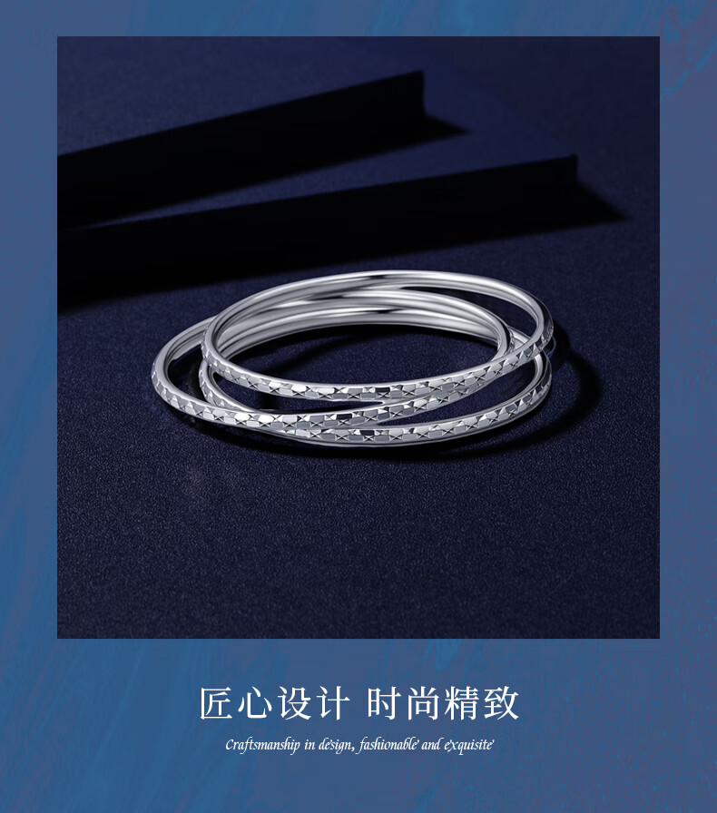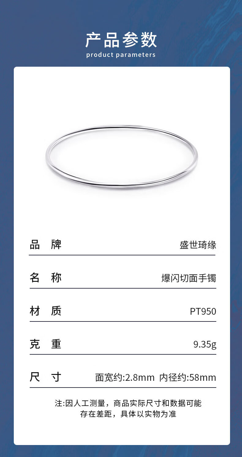 Shengshi Qiyuan platinum bracelet for women pt950 genuine platinum bracelet pure platinum perfect round flashing three lives and three generations bracelet 7.48g/inner diameter 52mm/thick about 2.8mm