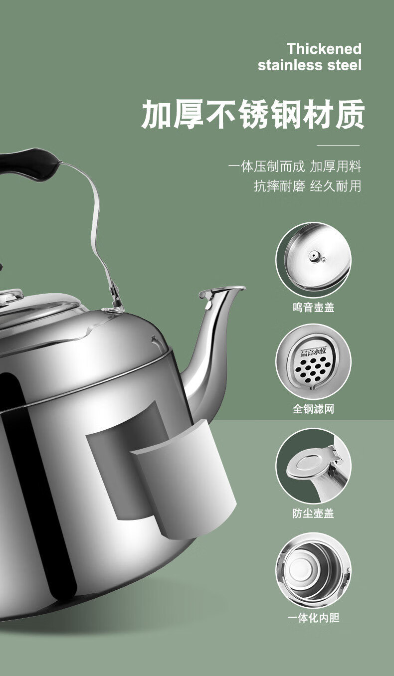 Yangma recommends 316 stainless steel kettle whistle household large capacity boiling water gas whistle electromagnetic 3161L huge thick 316 grade steel standard 5.0 liter flagship 316 kettle