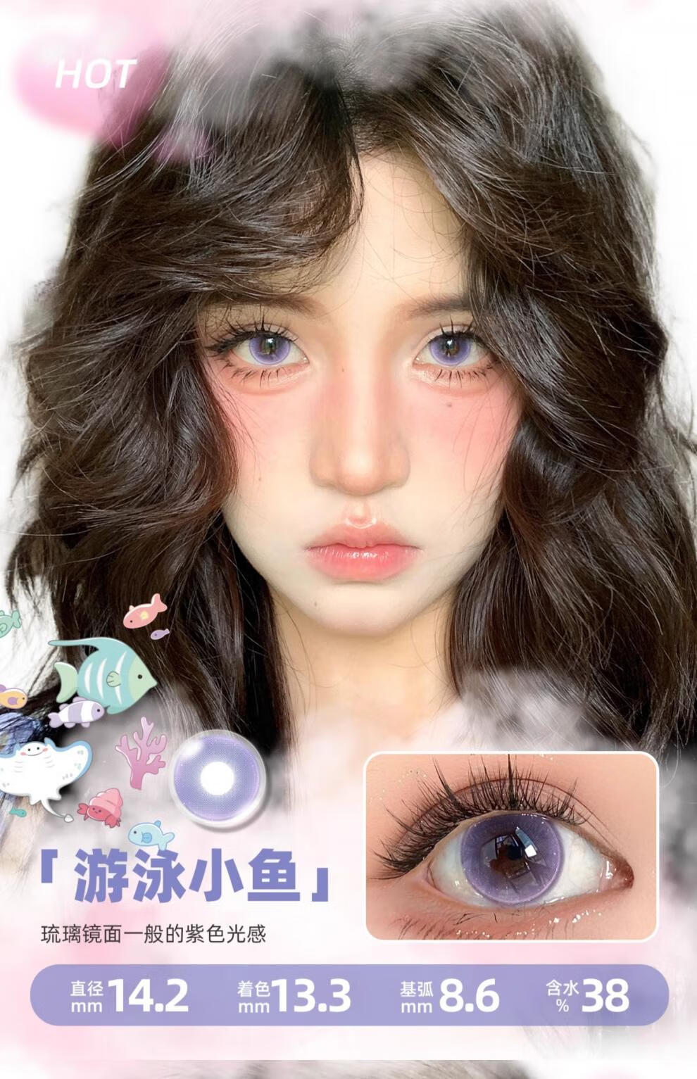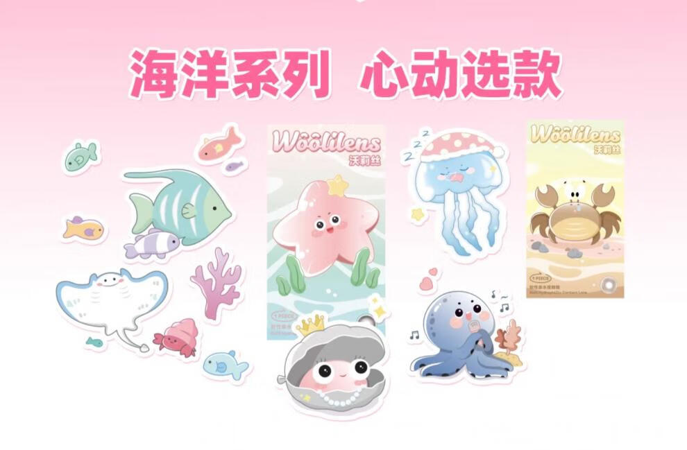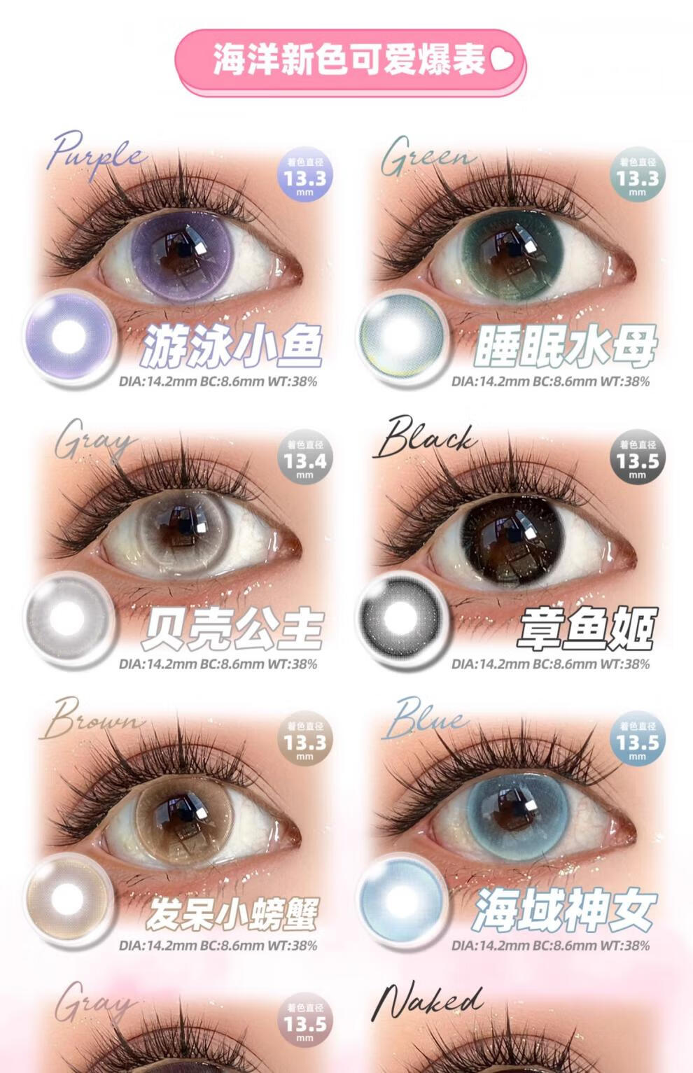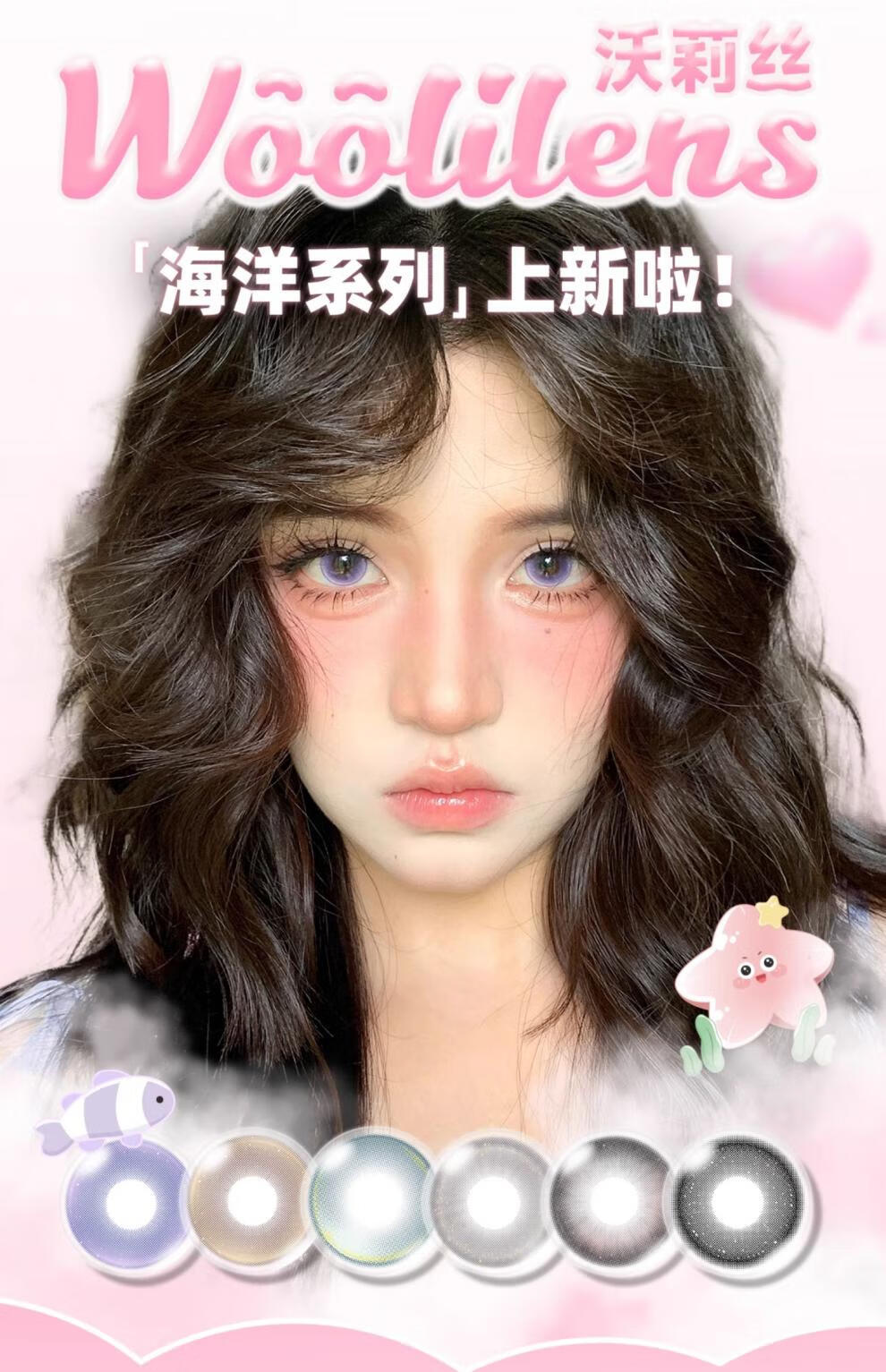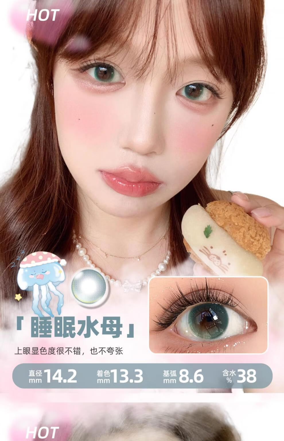 Woolilens沃莉丝美瞳女半年抛睡眠水母游泳小鱼紫色混血隐形眼镜 NEW萤火精灵绿14.2mm 475度