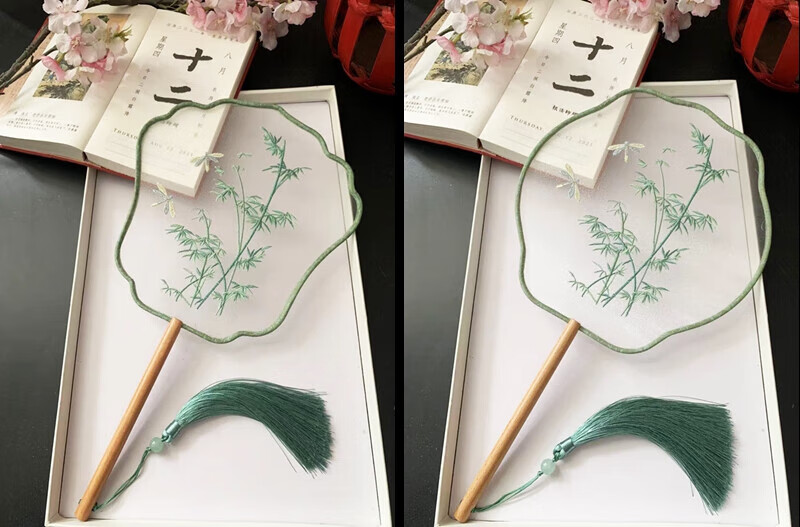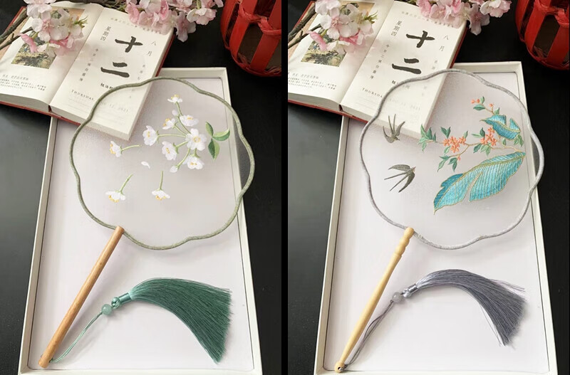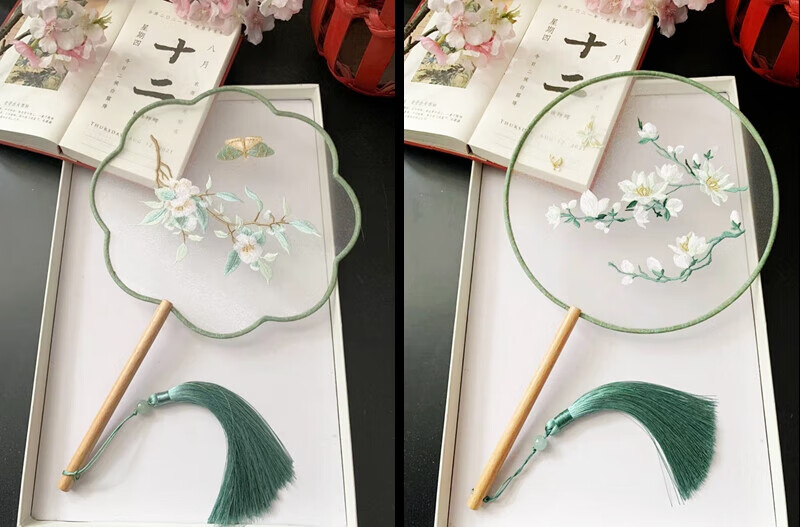 Shijanu ancient fan Chinese ancient style embroidered round fan retro generation Hanfu cheongsam catwalk dance Su embroidery round female window shadow mottled dancing fan