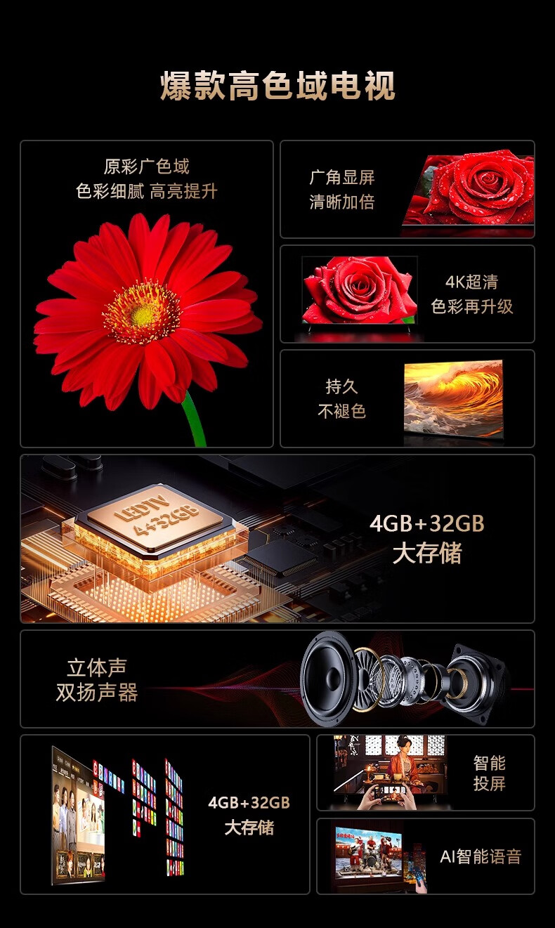 Amoi 32/40/45/50/55/60/65/70/75-inch 4K ultra-high-definition TV metal full-screen frameless network intelligent voice projection eye protection flat-panel color TV TV4K-50 voice network version 74cm long and 44cm wide