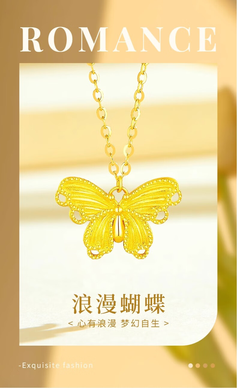 CHINA GOLD 18k gold romantic butterfly pendant fairy butterfly necklace jewelry Valentine's Day birthday gift for girlfriend and wife 18k gold romantic butterfly pendant - about 0.2g free silver chain
