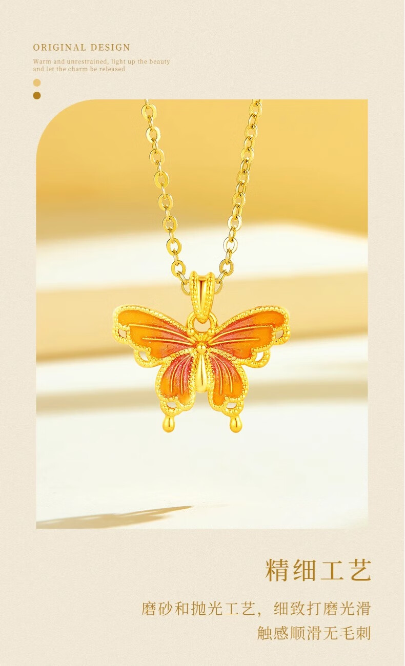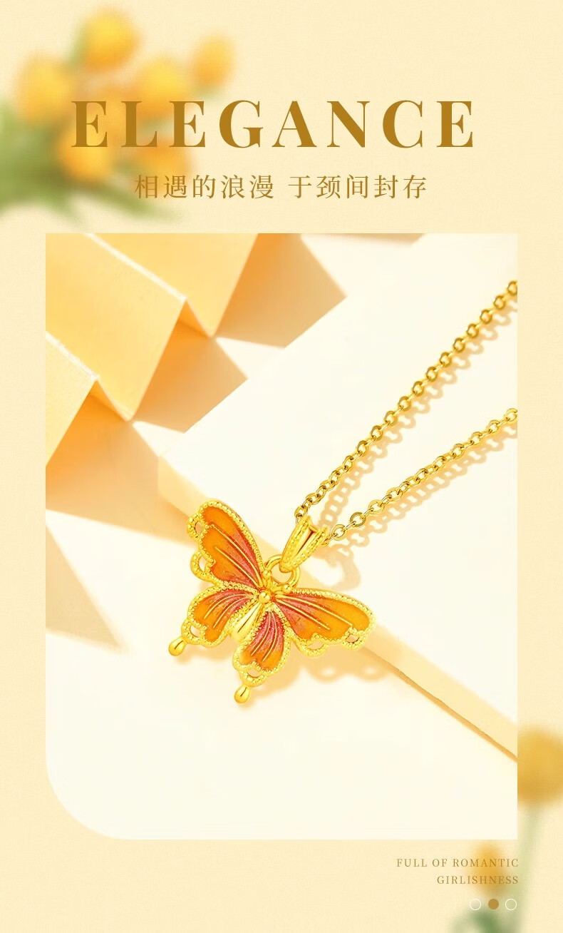 CHINA GOLD 18K gold necklace enamel butterfly pendant clavicle chain jewelry Valentine's Day birthday gift for girlfriend and wife 18K gold enamel butterfly pendant - about 0.3g free silver chain