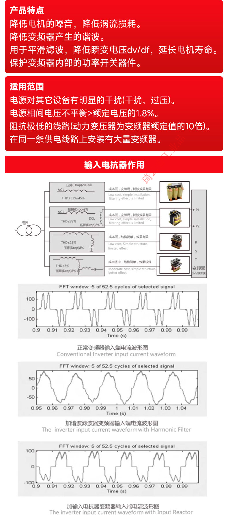 Three-phase output reactor frequency converter 55KW75KW90KW filter incoming line input reactor input (incoming line) copper wire 55KW (150A)