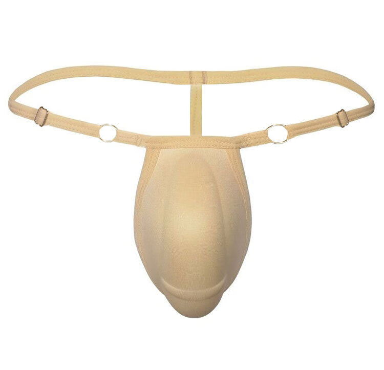 Wen Shiou Men's 3D Realistic Sponge Cup Underwear Shows Bigger Sexy Low Waist Adjustable Thong Plus Size Black 80-200Jin Jin equals 0.5kg Adjustable Style