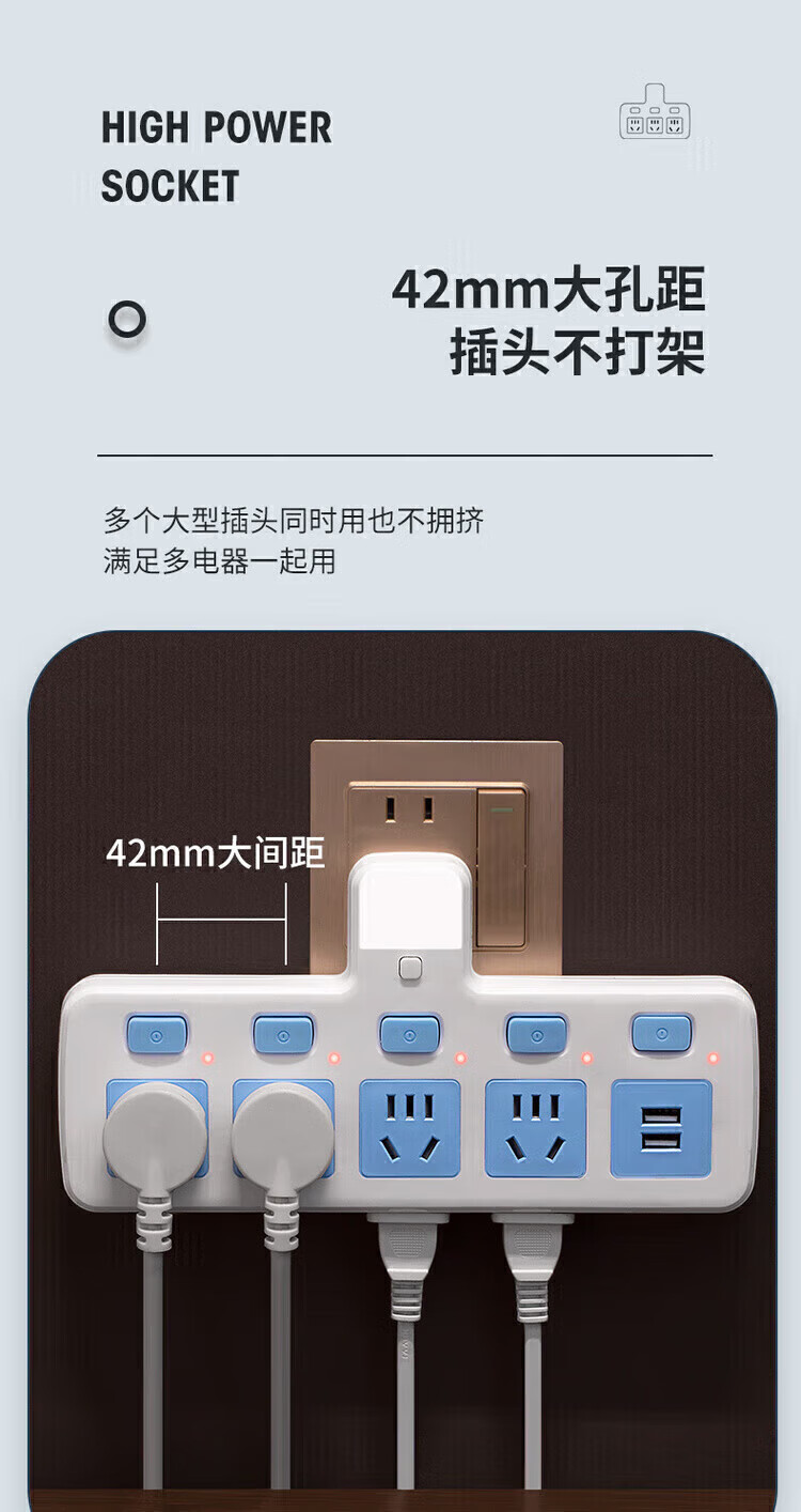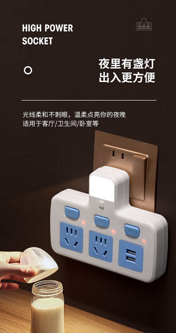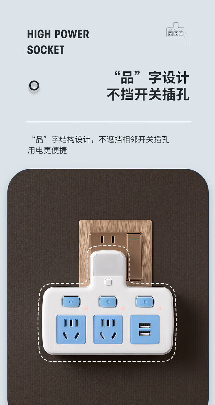 Bull Bull King socket plug converter socket USB independent switch one turn multi-hole household plug strip wireless branch non-Bull upgraded side plug one turn four with light 17