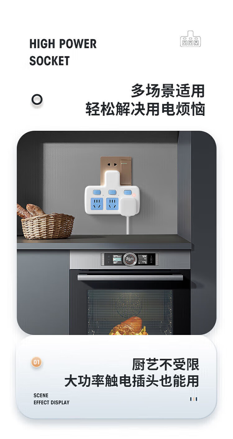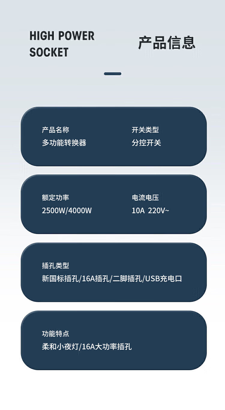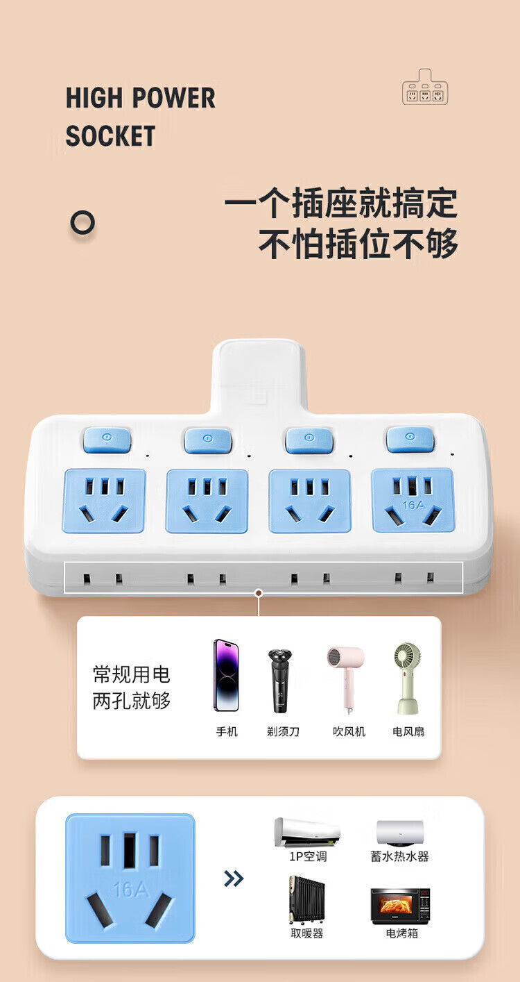 Bull Bull King socket plug converter socket USB independent switch one turn multi-hole household plug strip wireless branch non-Bull upgraded side plug one turn four with light 17