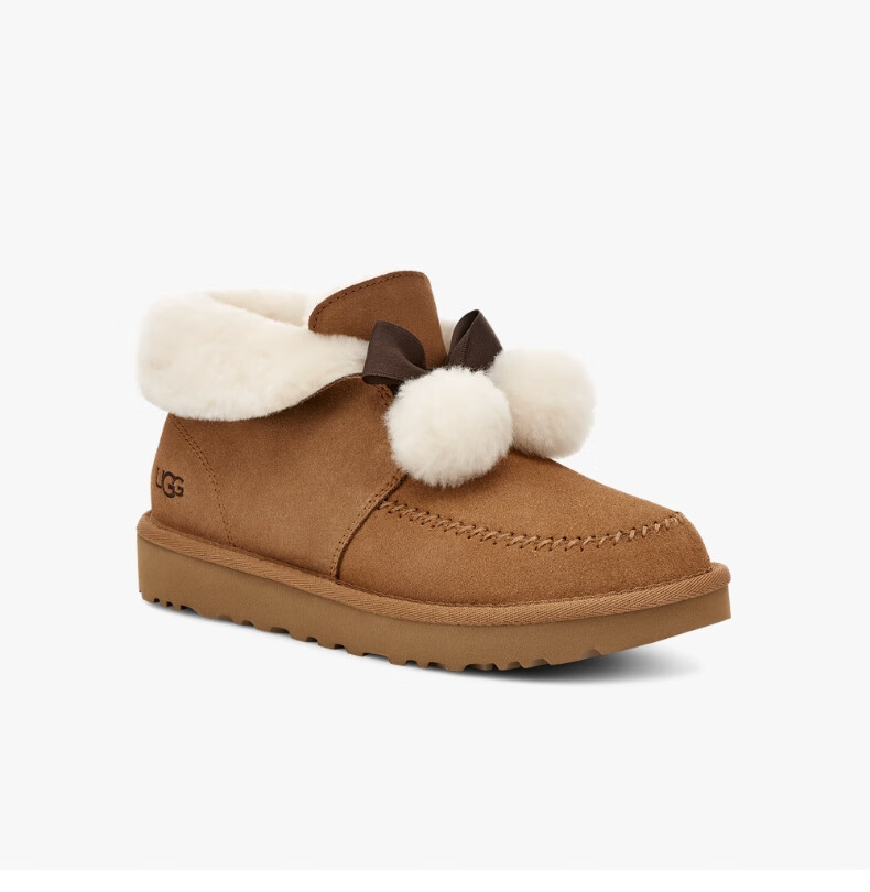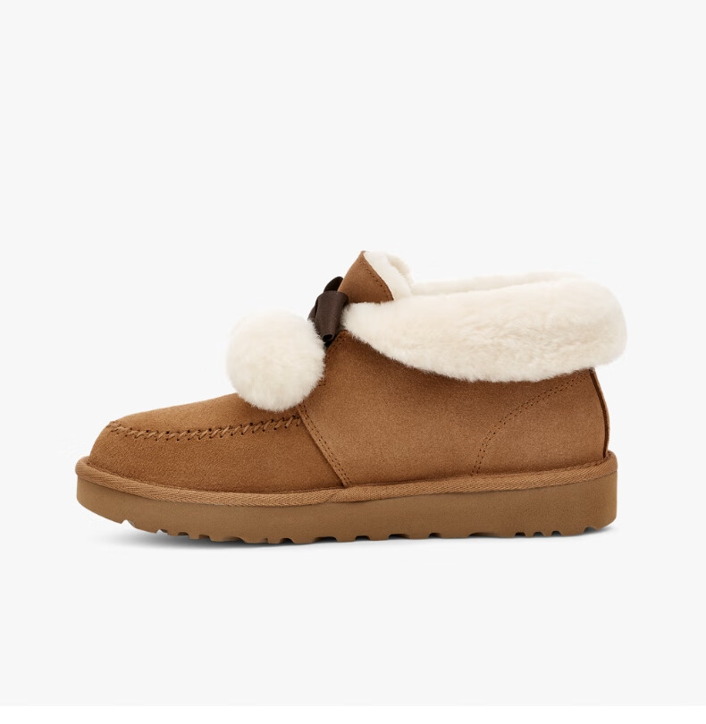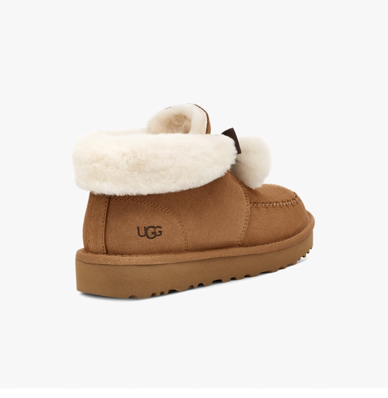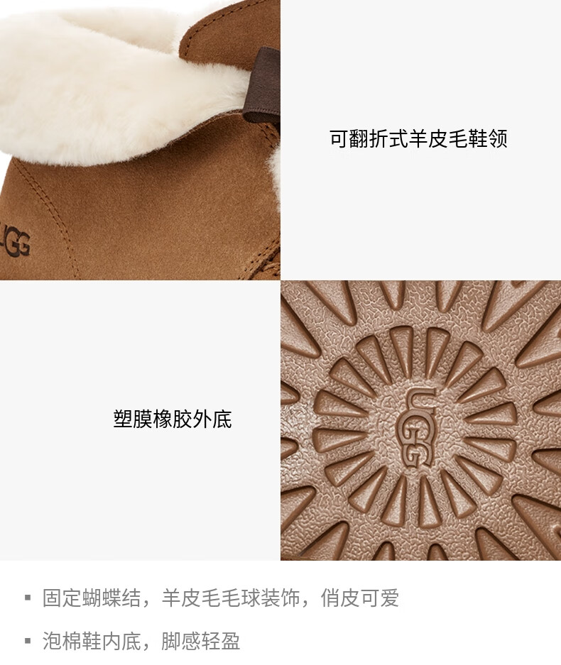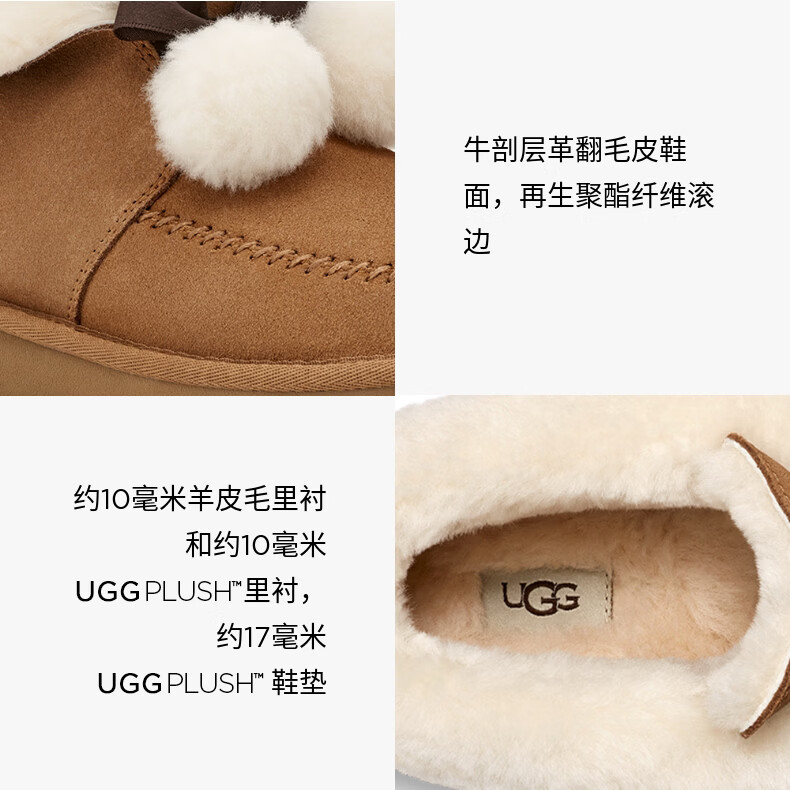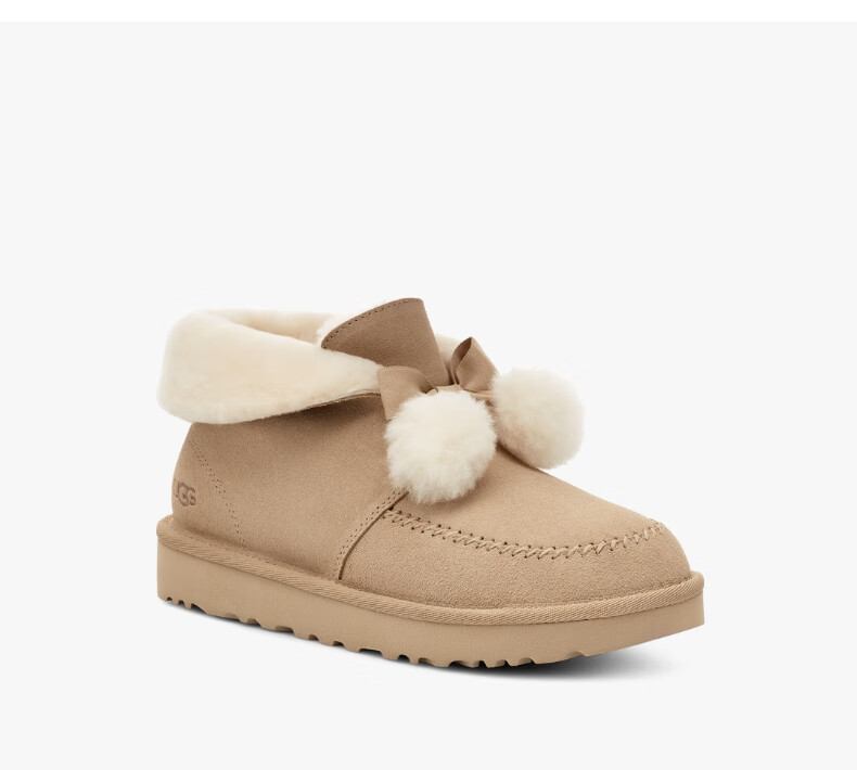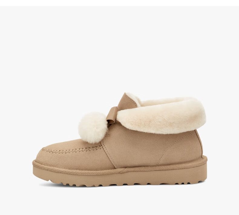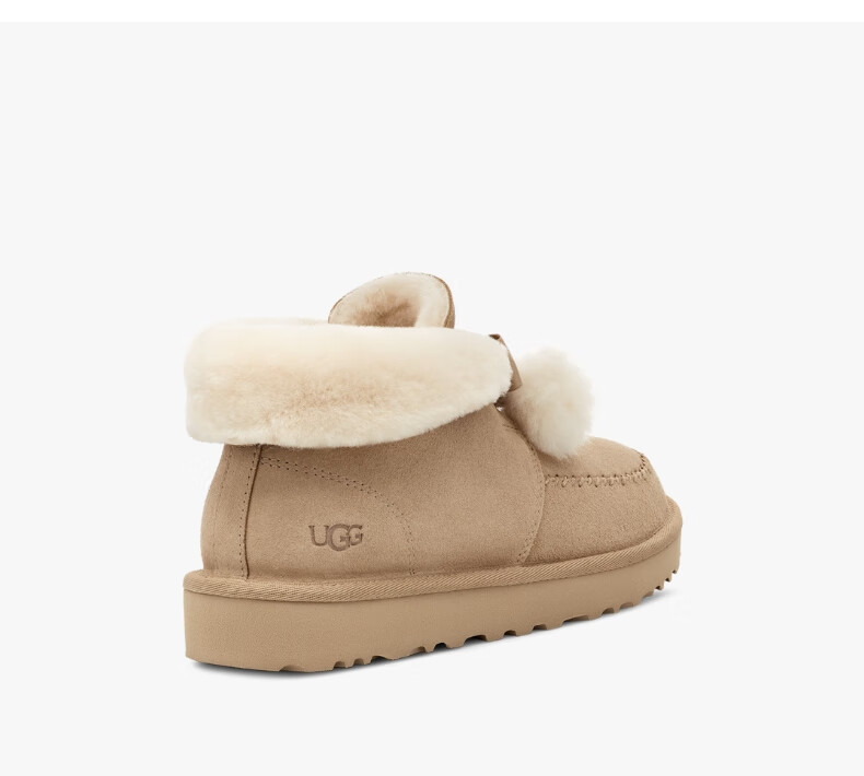 UGG Autumn Women's Fashionable and Comfortable Flat Bottom Round Toe Bow Fold-Up Lazy Fur Shoes 1153517 SWD | Sawdust Color 38