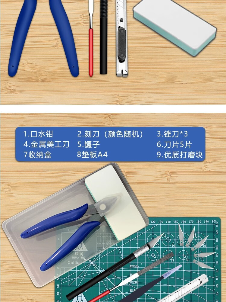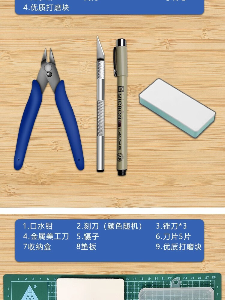Model Tools Gundam Assembly Tool Set Water Mouth Pliers File Tweezers Carving Knife Utility Knife Model Making Tools Master Basics (Gundam Tools)