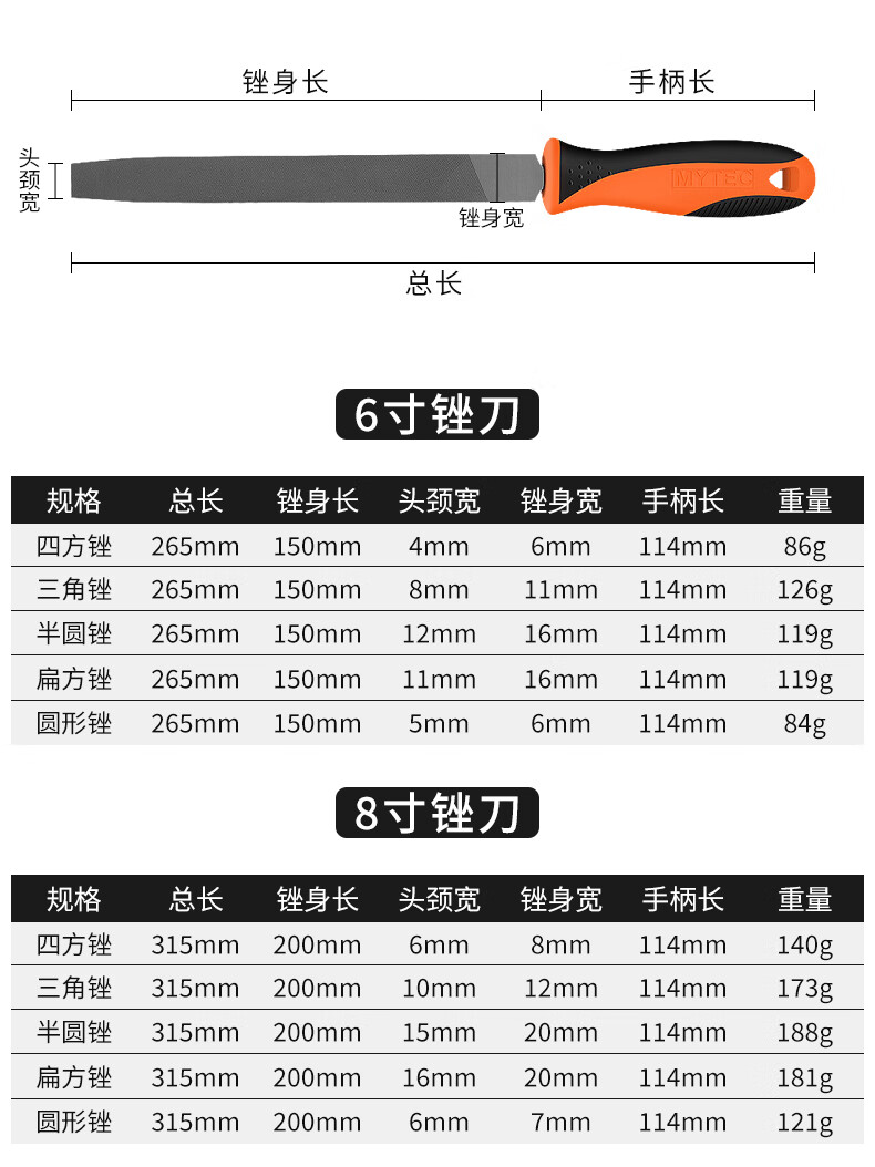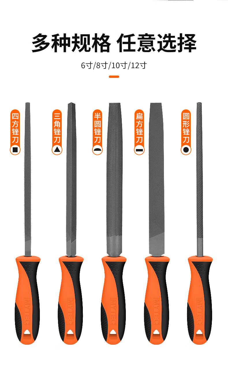 File grinding tool, triangular file, steel file, semi-circle file, steel file, flat file, rubbing knife set, quenched round file, 6 inches