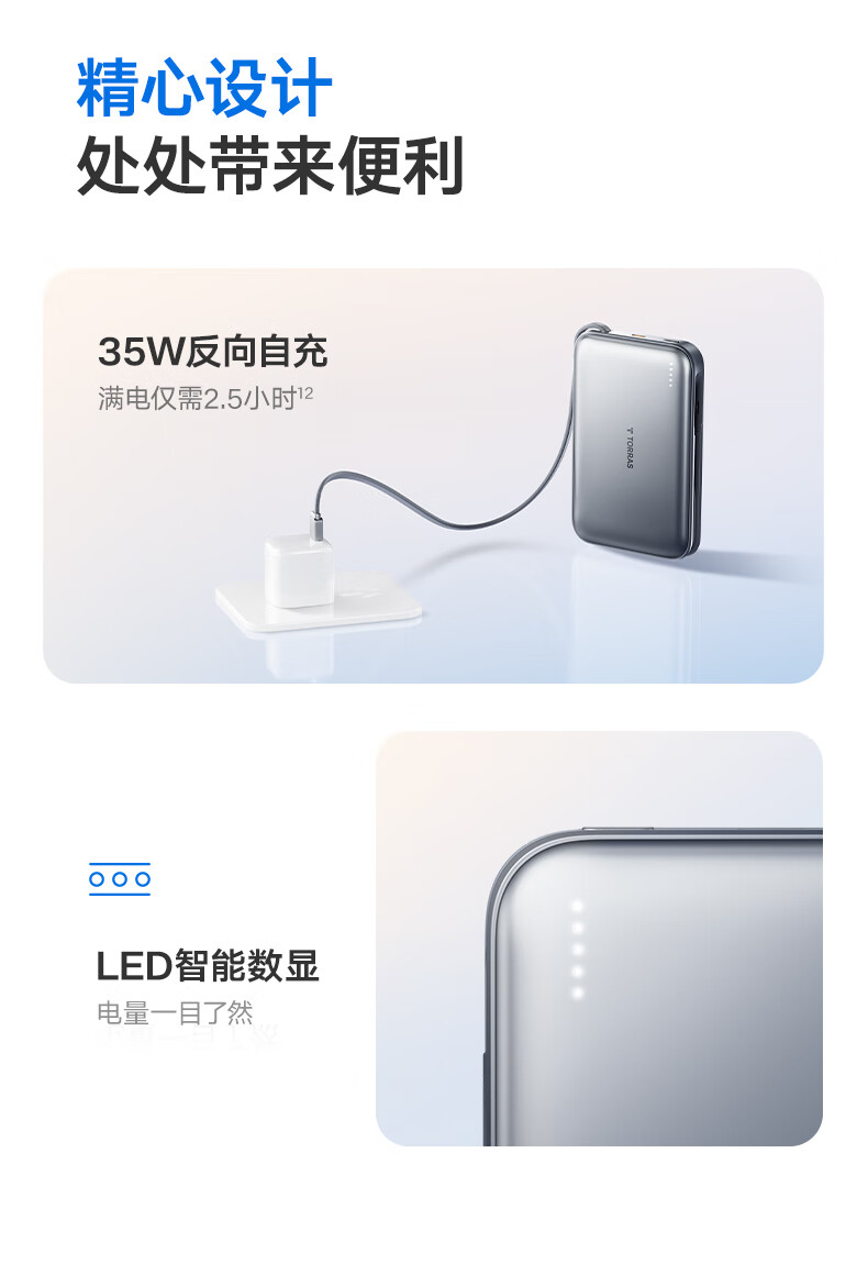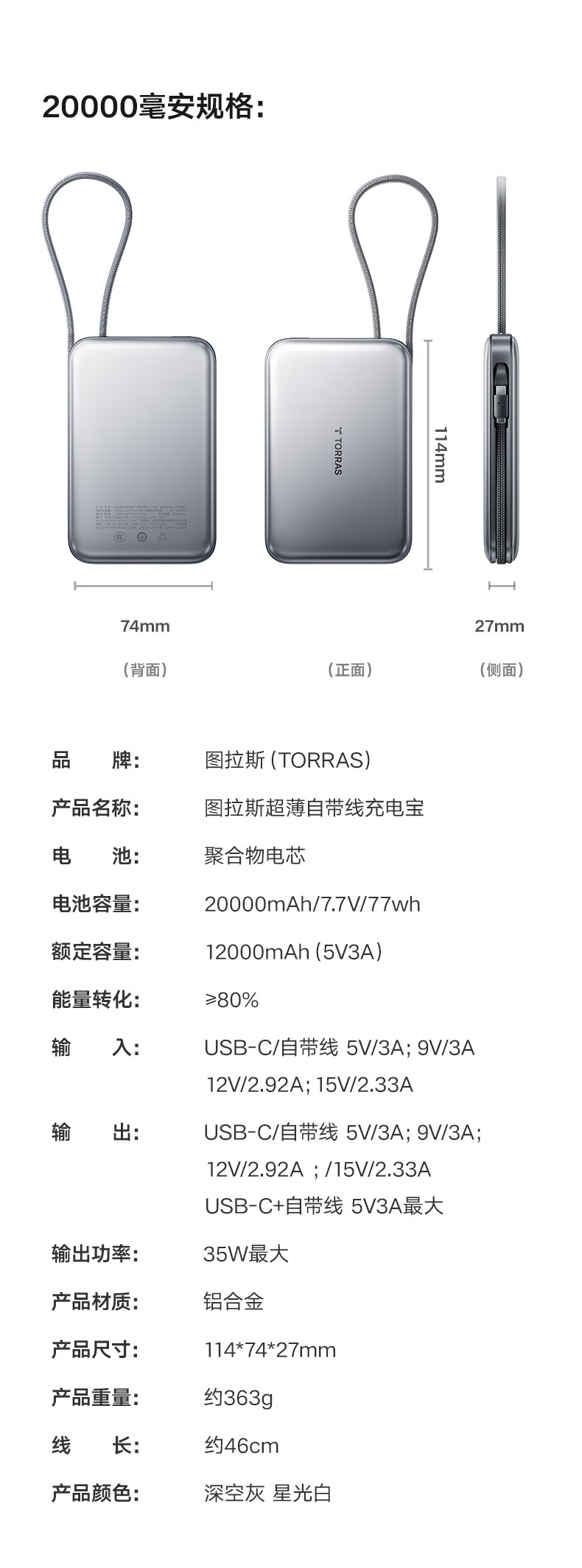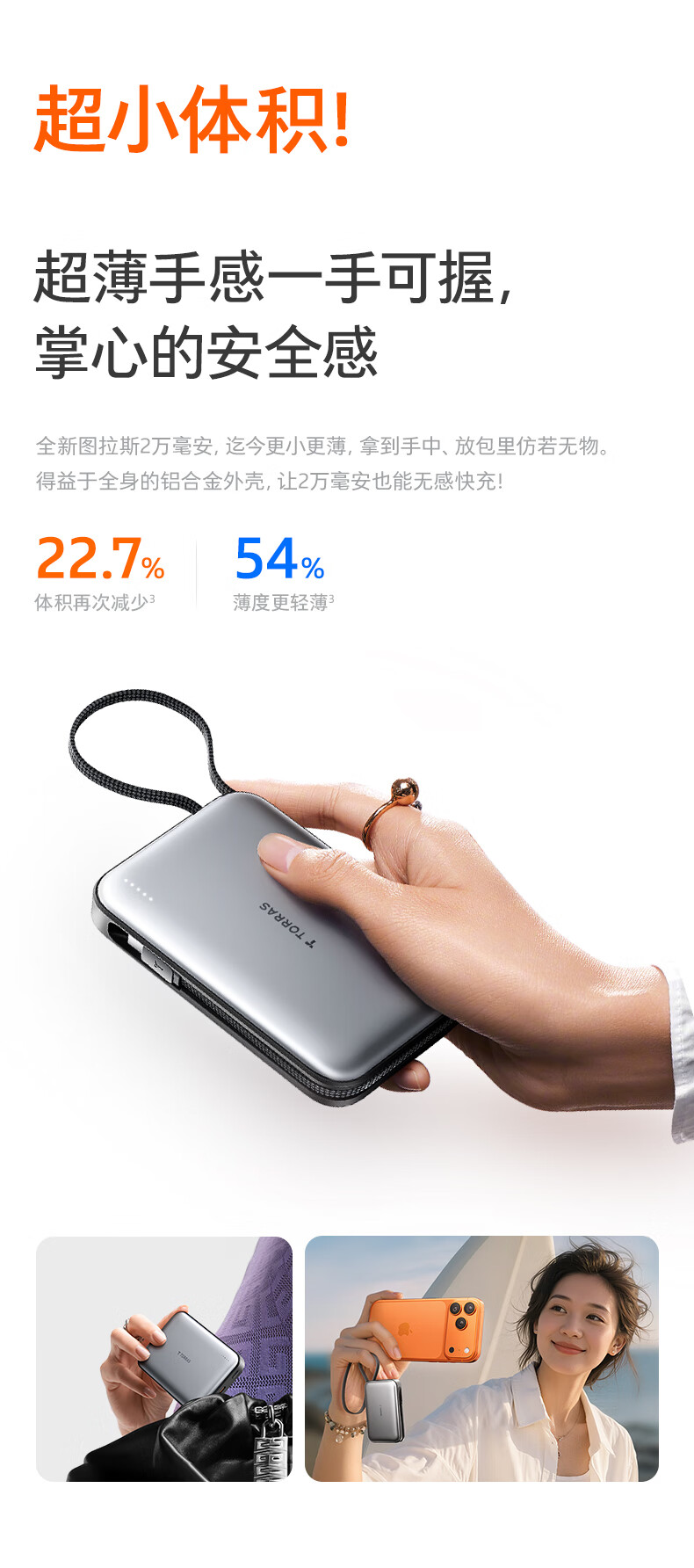 Turas power bank 20000 mAh New national standard 3C certification丨Can be used on airplanes Comes with cable Super fast charging 35w Portable large capacity Suitable for Android and Apple iPhone17 3C certification丨20,000 mAh Space gray C port 3C certification Best selling million Mini model丨50cm comes with cable