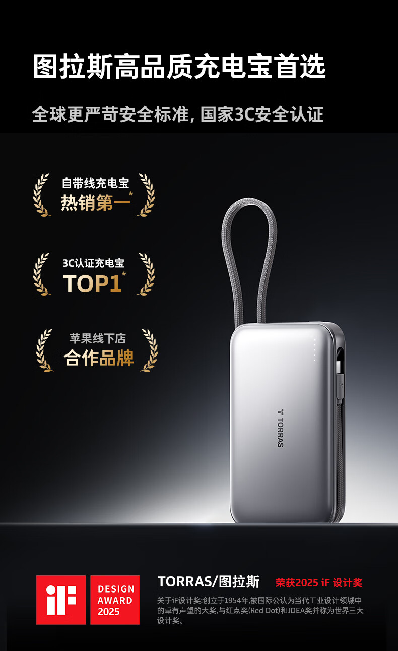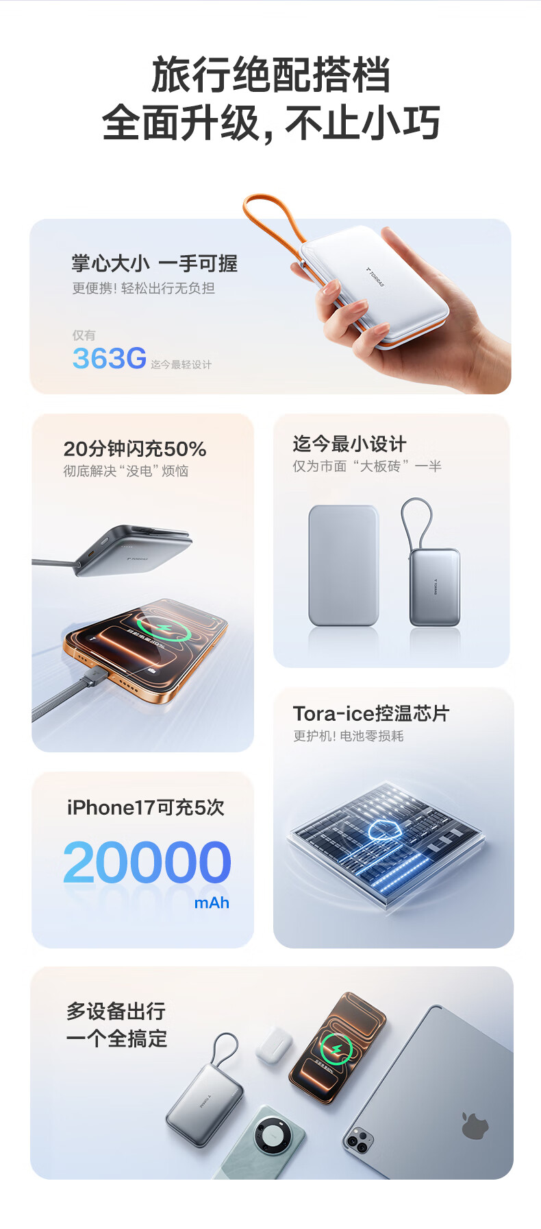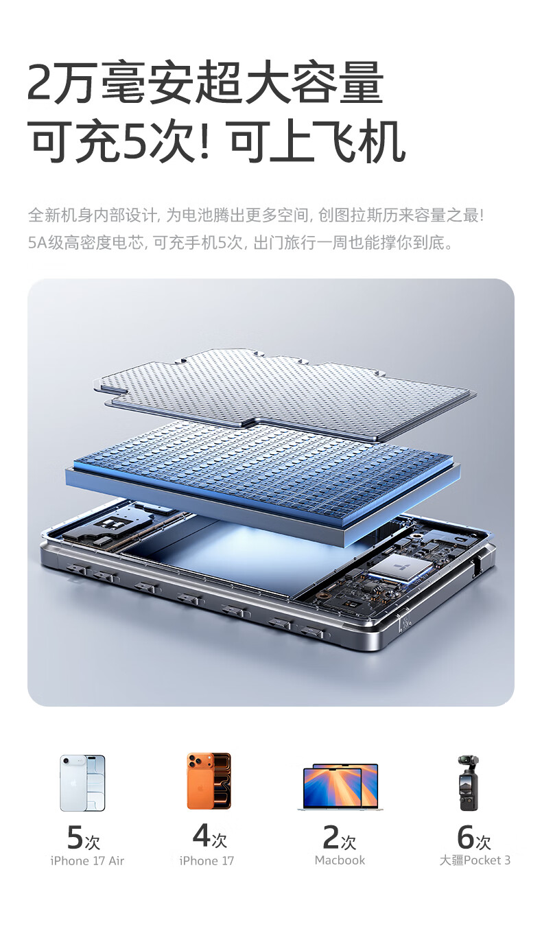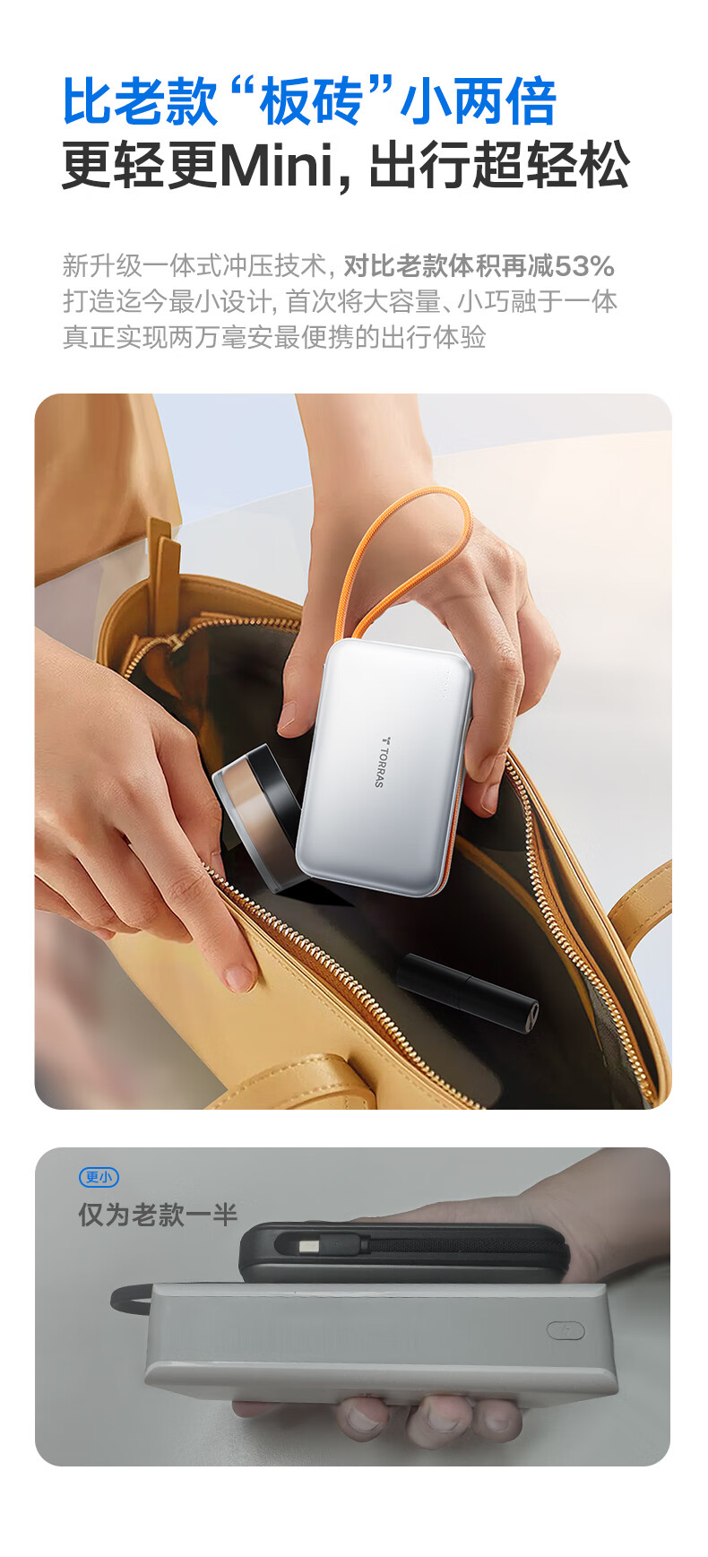Turas power bank 20000 mAh New national standard 3C certification丨Can be used on airplanes Comes with cable Super fast charging 35w Portable large capacity Suitable for Android and Apple iPhone17 3C certification丨20,000 mAh Space gray C port 3C certification Best selling million Mini model丨50cm comes with cable