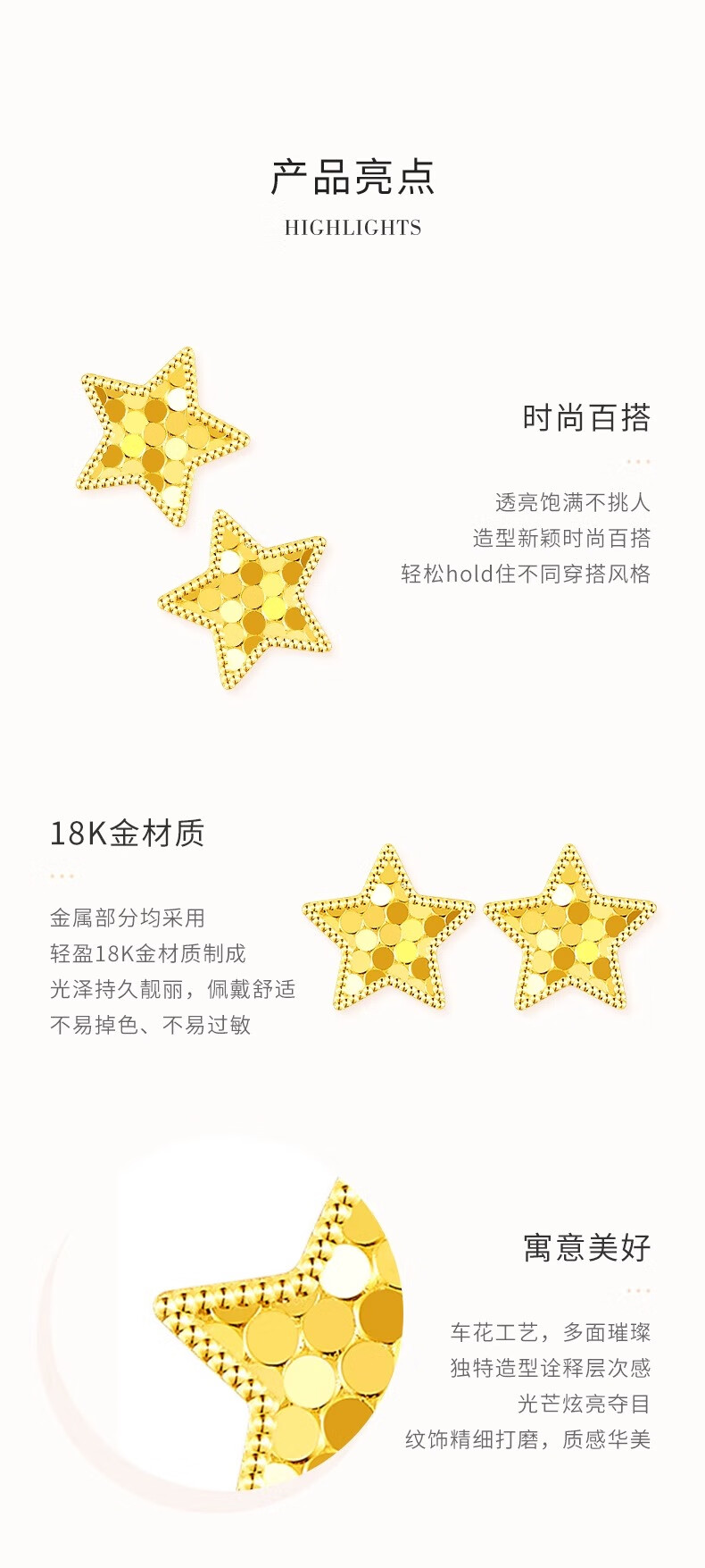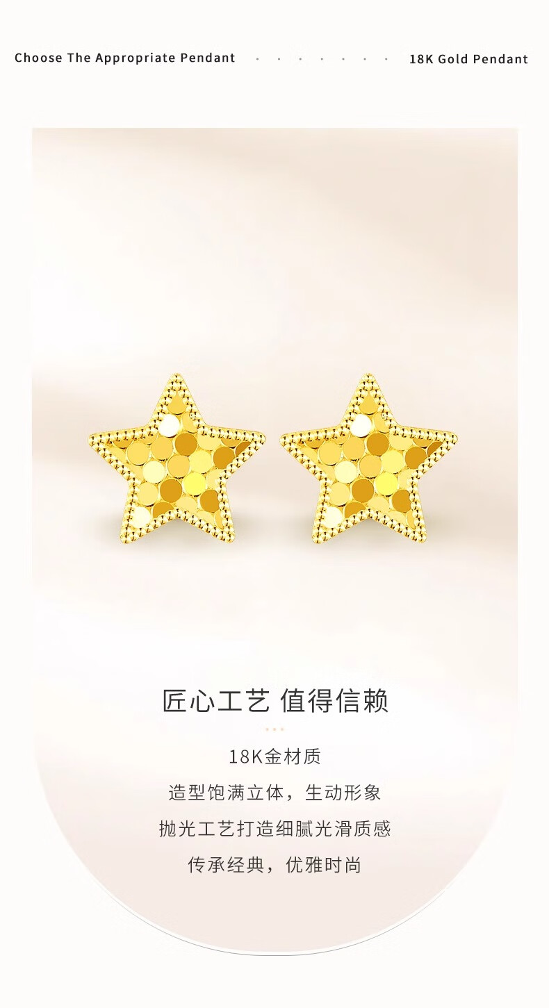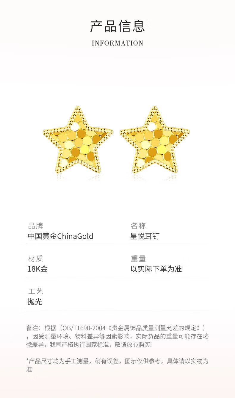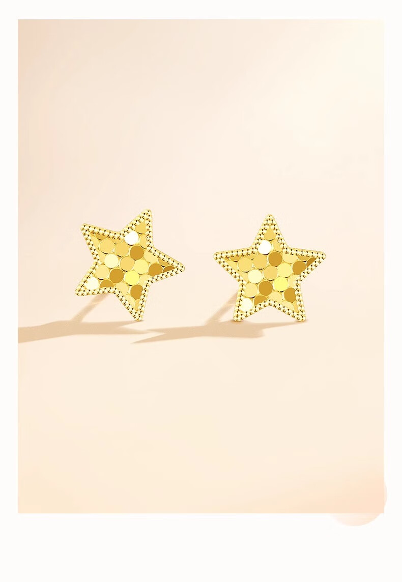CHINA GOLD 18K Gold Honeycomb Star Earrings for Women New Dragon Scale Pentagram Old Valentine's Day Birthday Gift for Girlfriend and Wife 18K Gold Star Earrings Pair About 0.2g