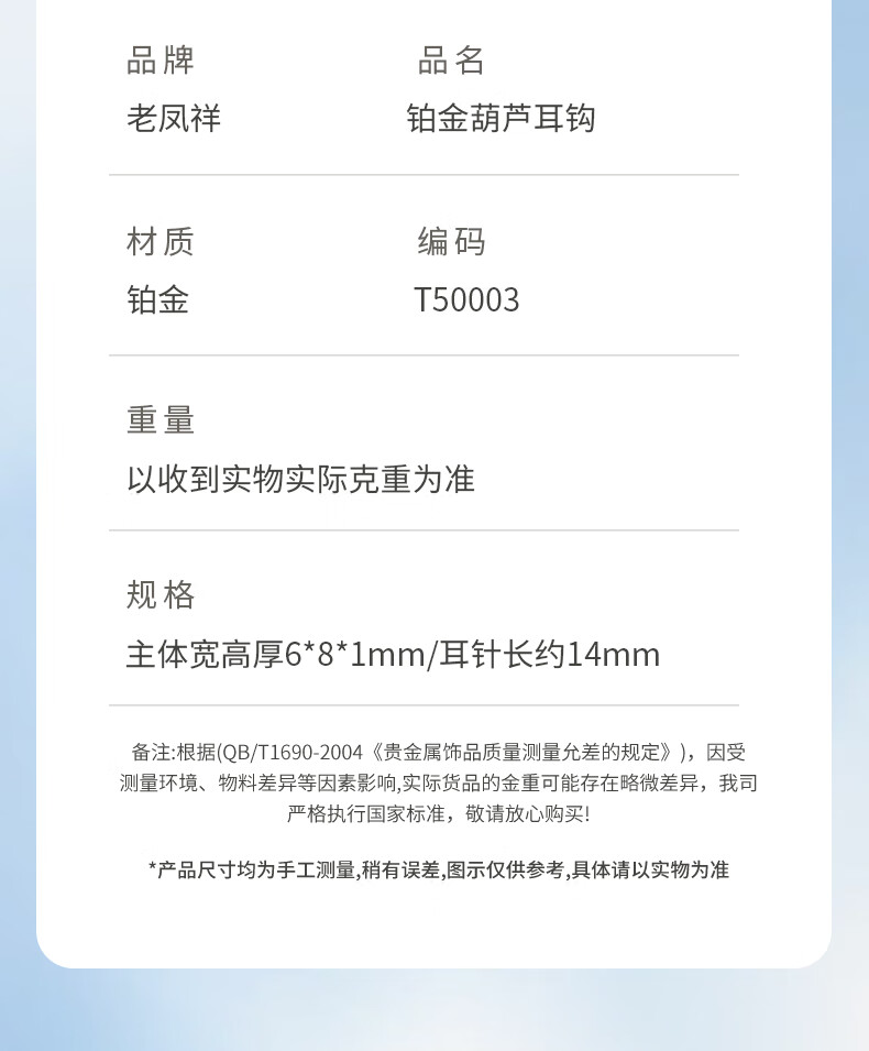 Lao Fengxiang platinum gourd earrings for women platinum light luxury earrings pricing holiday Valentine's Day gift for girlfriend and wife's birthday platinum gourd ear hooks