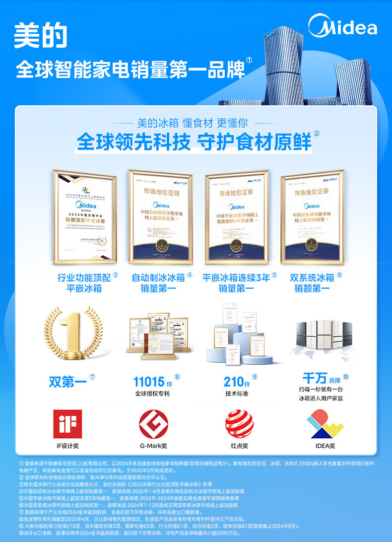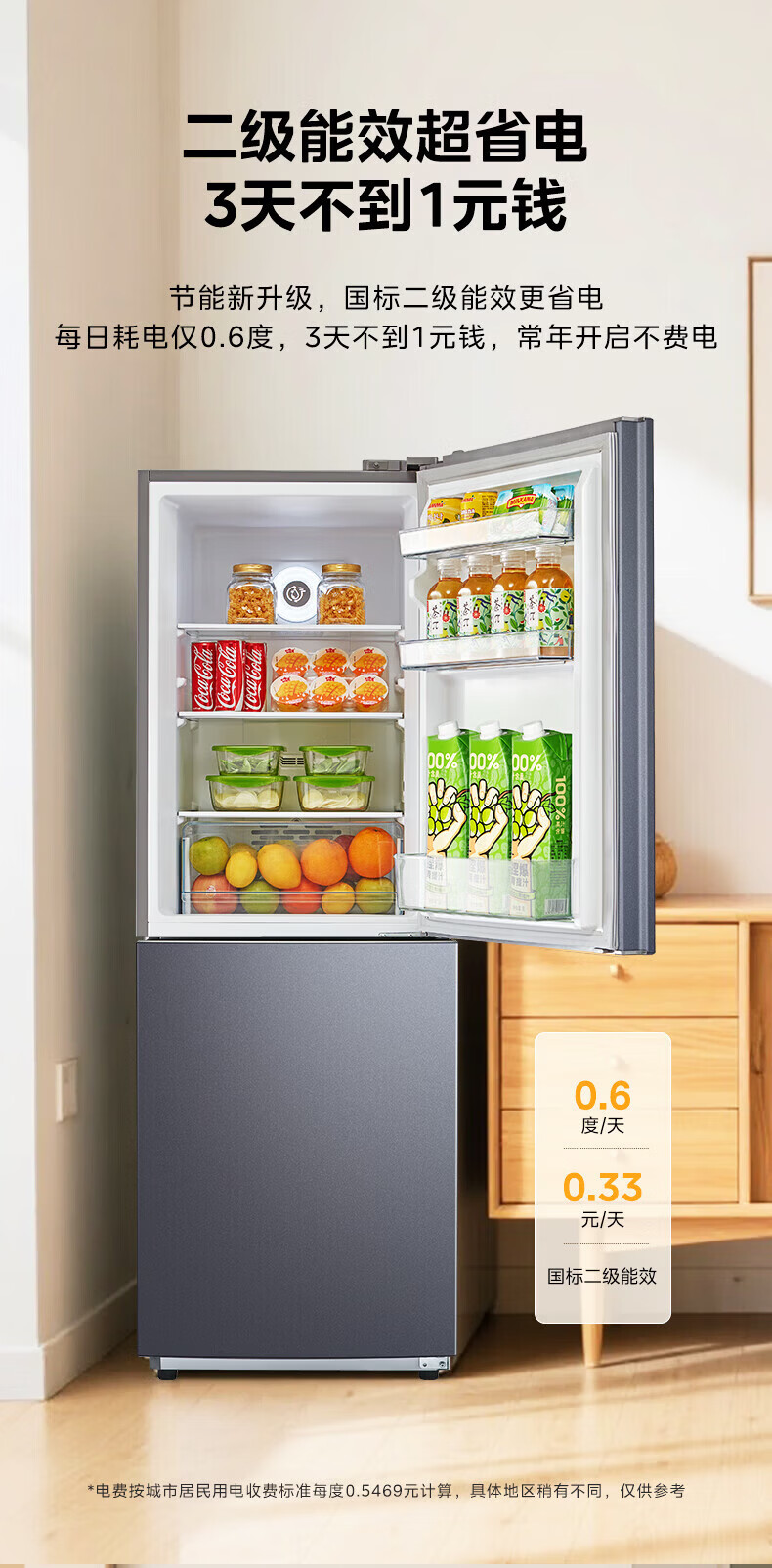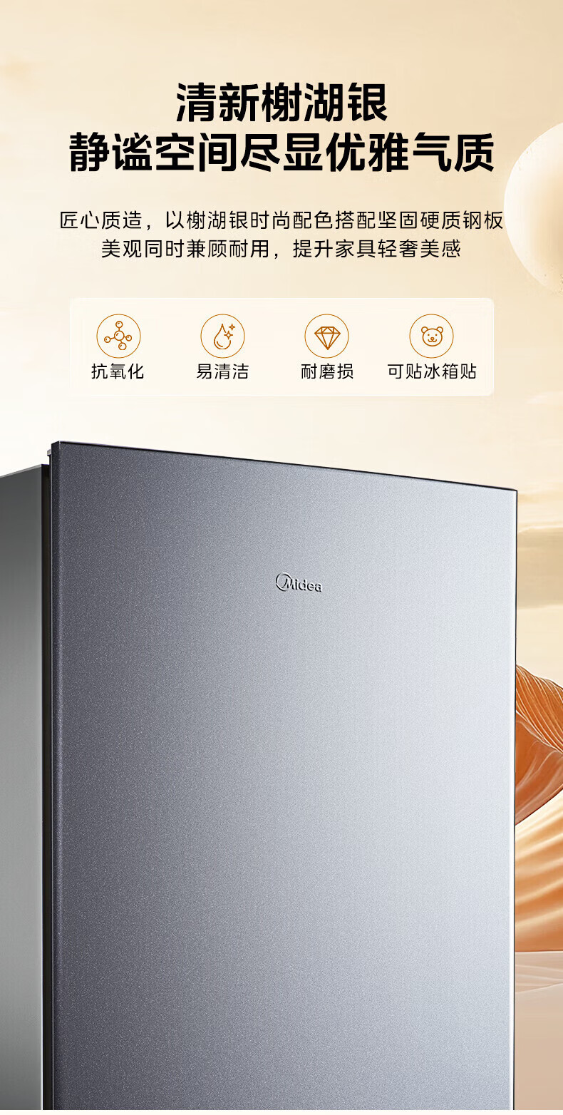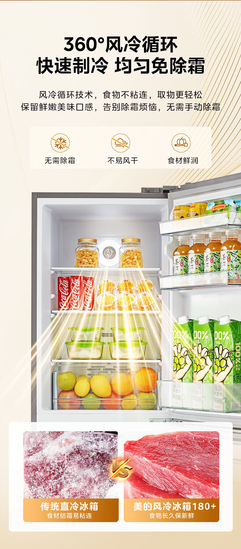 Midea 186 liter two-door refrigerator air-cooled frost-free dual system circulation rental household PT odor purifier small mini ultra-thin double door first-class saving non-inverter BCD-186WMA heavy new 186 liter air-cooled dual system PT odor purifier