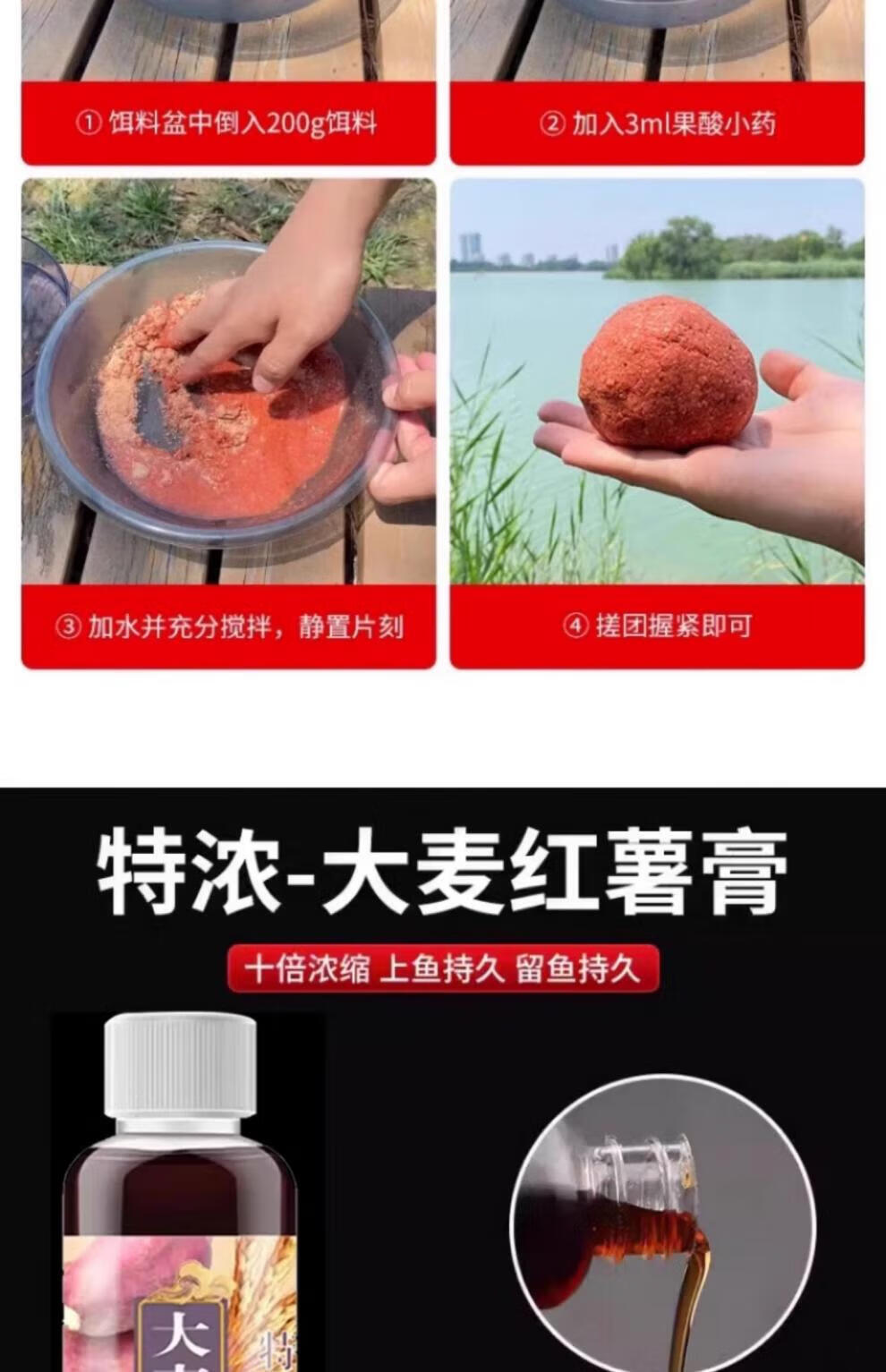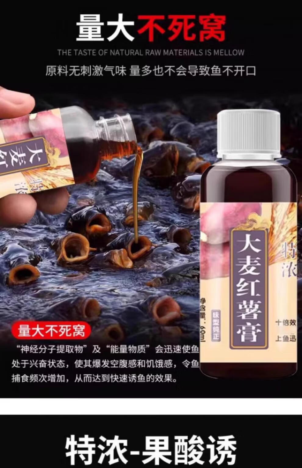 High-concentration fruit acid barley sweet potato paste, concentrated nest bait, wild fishing crucian carp, carp, black pit fishing bait, set of three bottles, 1 bottle each, no Specifications