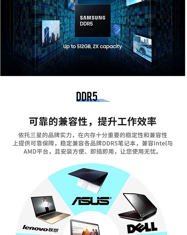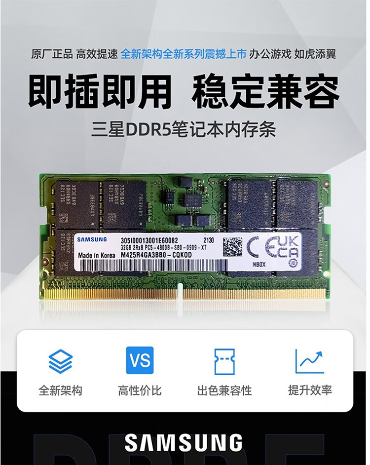 Samsung (SAMSUNG) DDR5 4800 5600 6400 notebook memory module suitable for ASUS Tianxuan 5/6 ROG Gunslinger 8/9 Moba Lenovo Savior Dell Alienware DDR5 5600MHz notebook memory E-DIE 16GB 1 piece single
