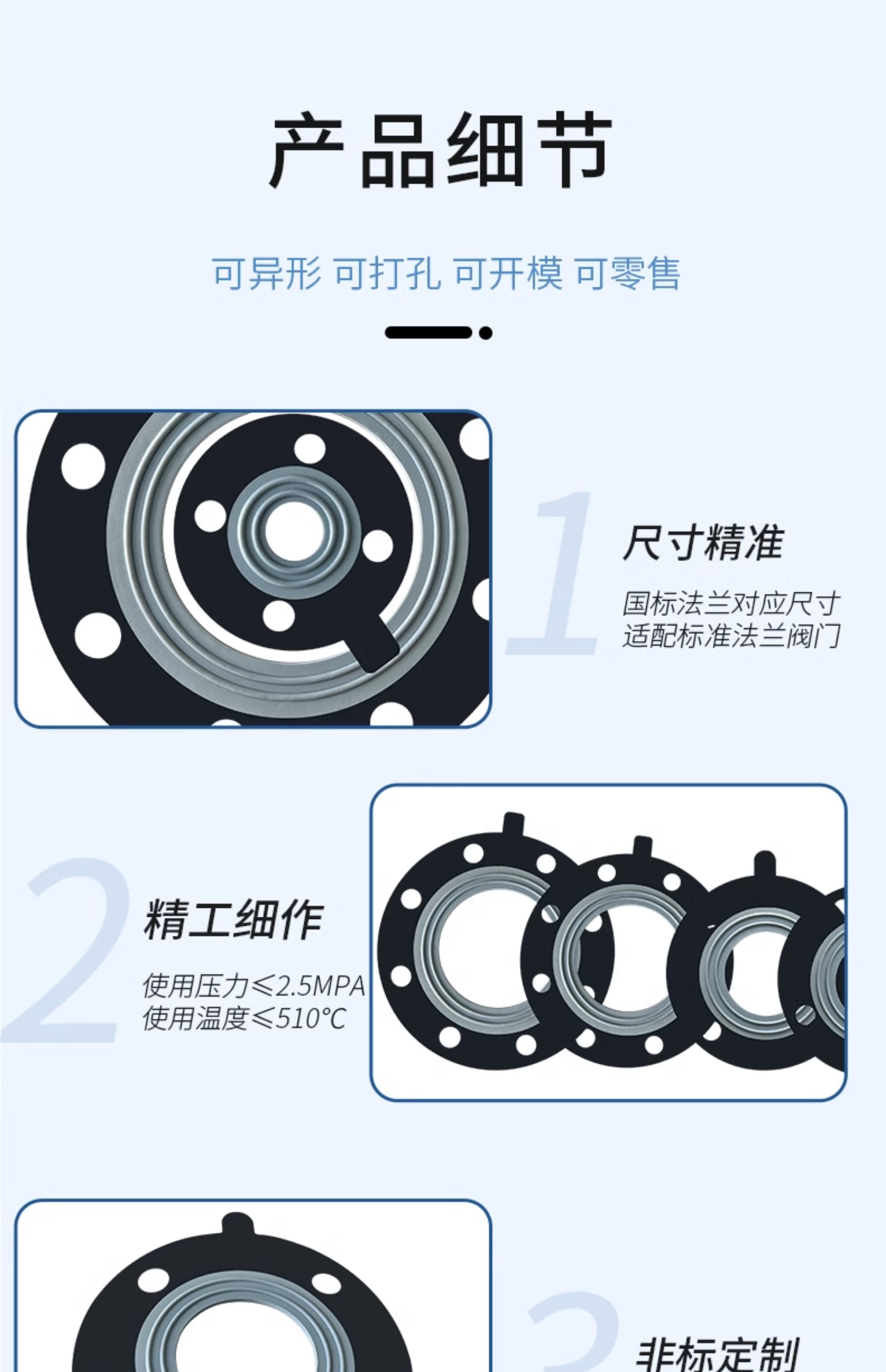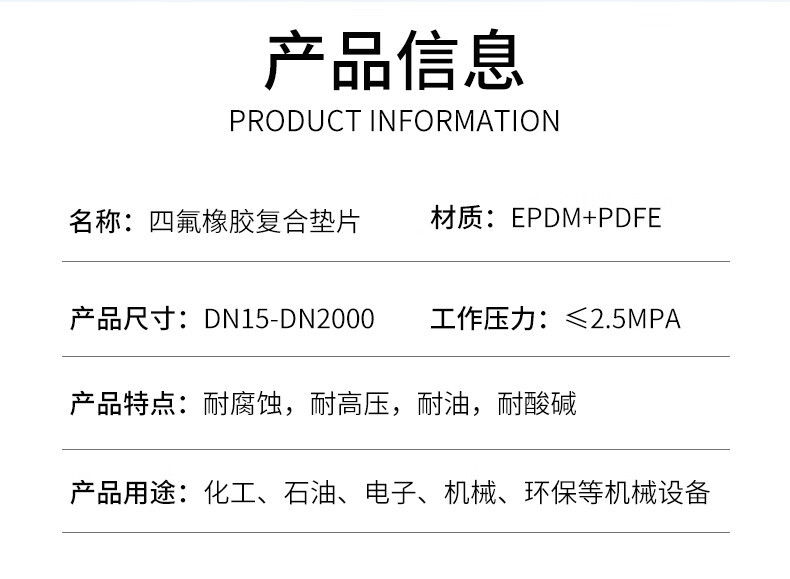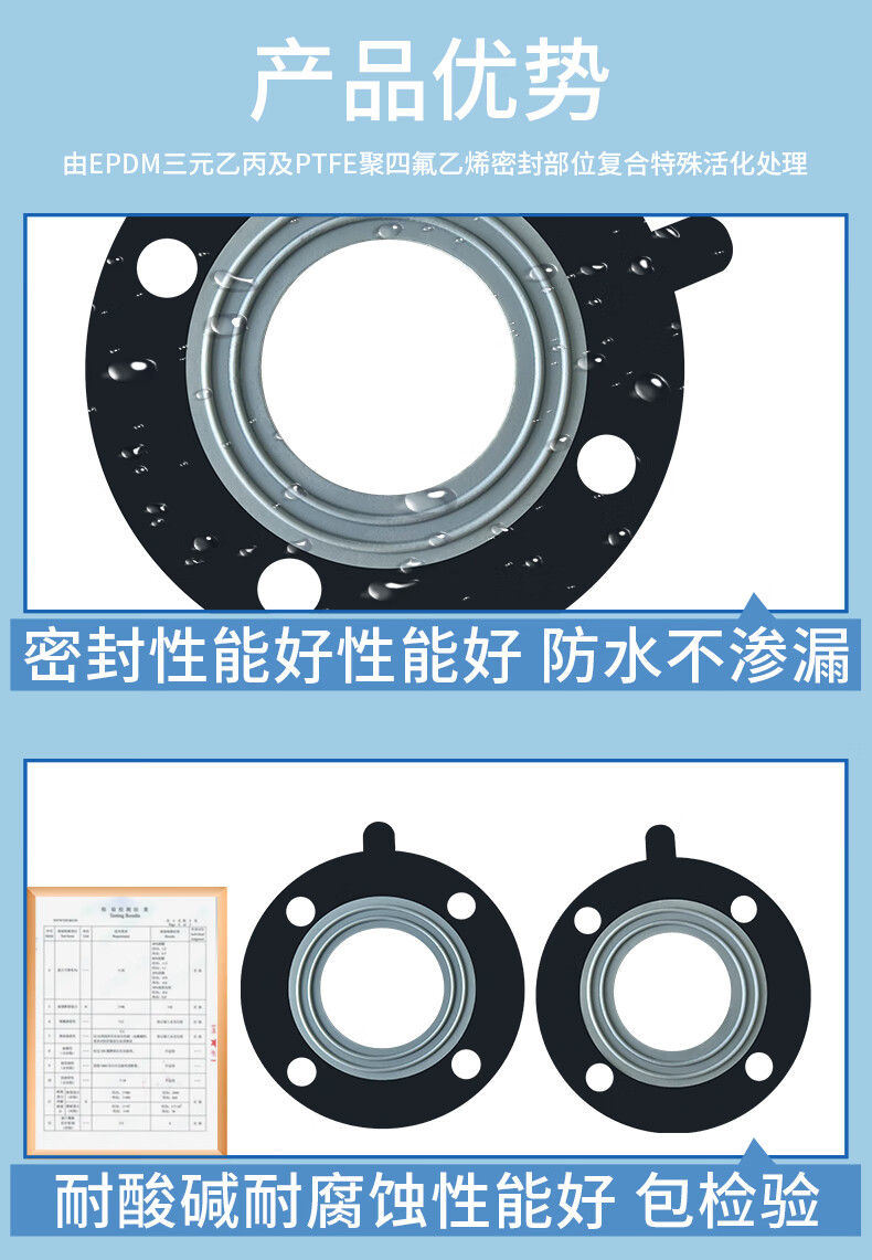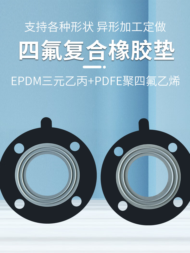 Jishuo PTFE coated rubber gasket PTFE PTFE gasket EPDM acid and alkali resistant PTFE flange gasket DN50 coated rubber gasket