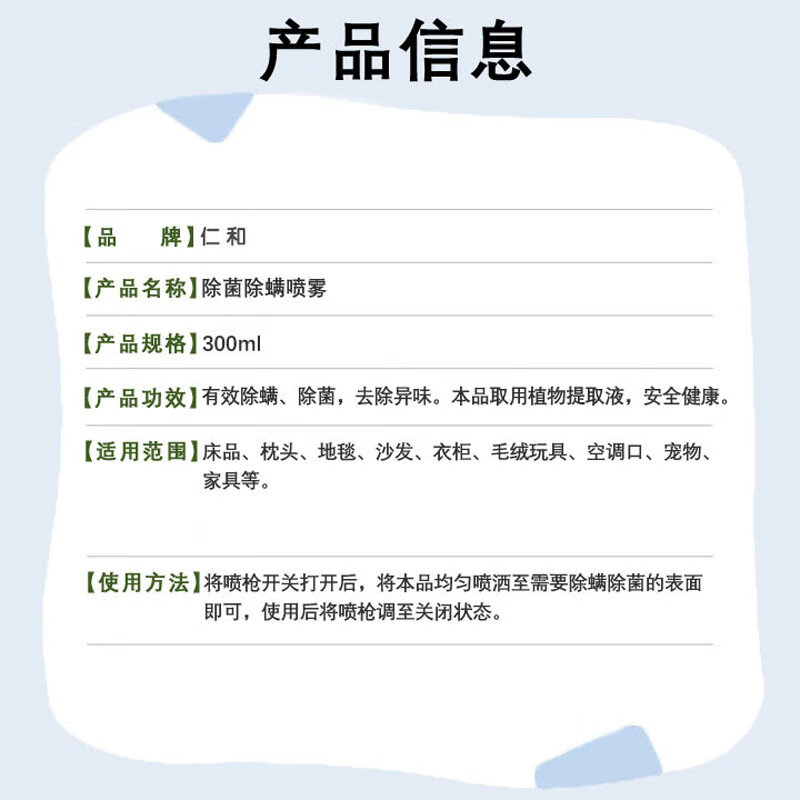 Renhe mite removal spray for home bed no-wash, sun-free, antibacterial baby mite spray supplies, pet quilt universal removal, mite removal and fragrance 1 bottle, single bottle is more expensive, recommended to buy a set