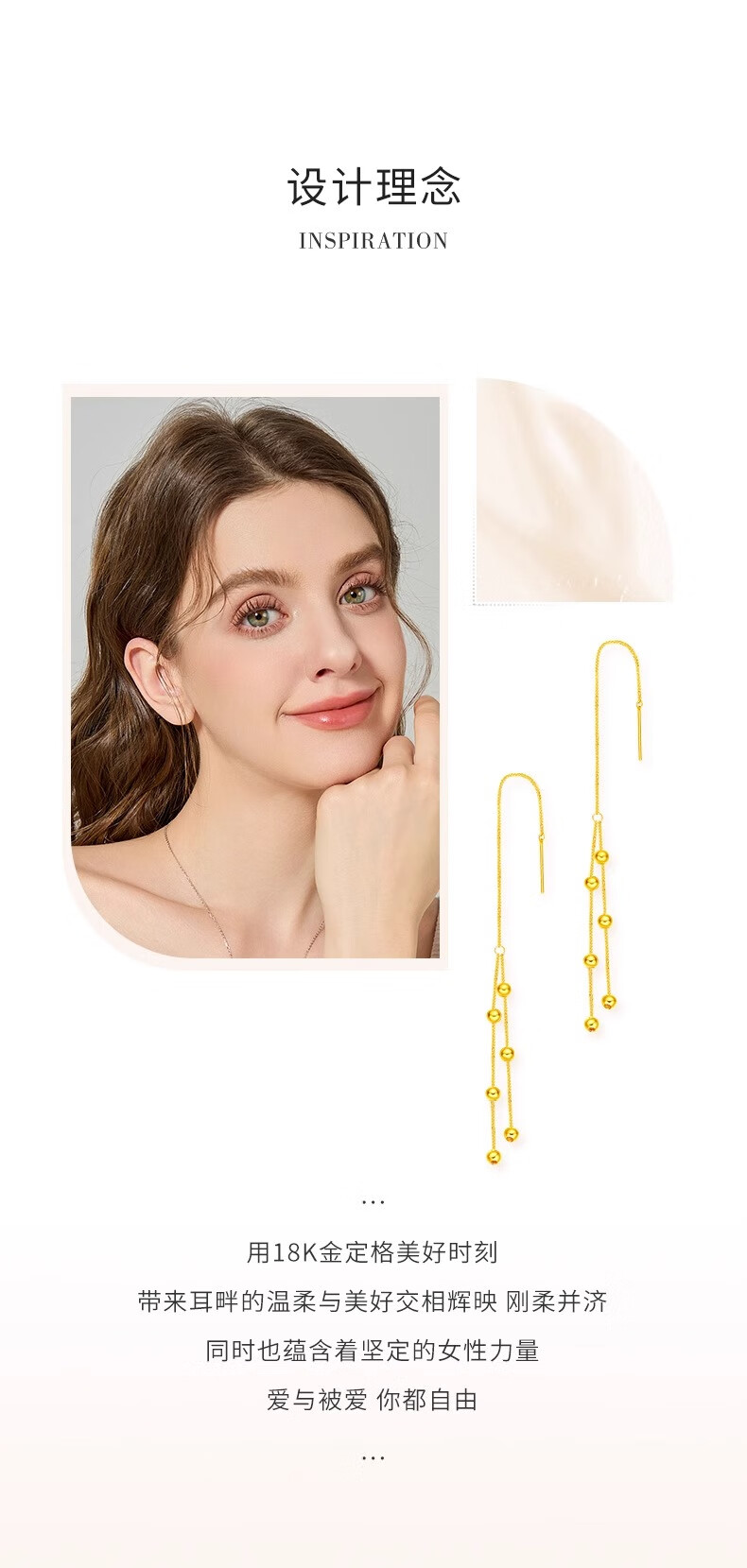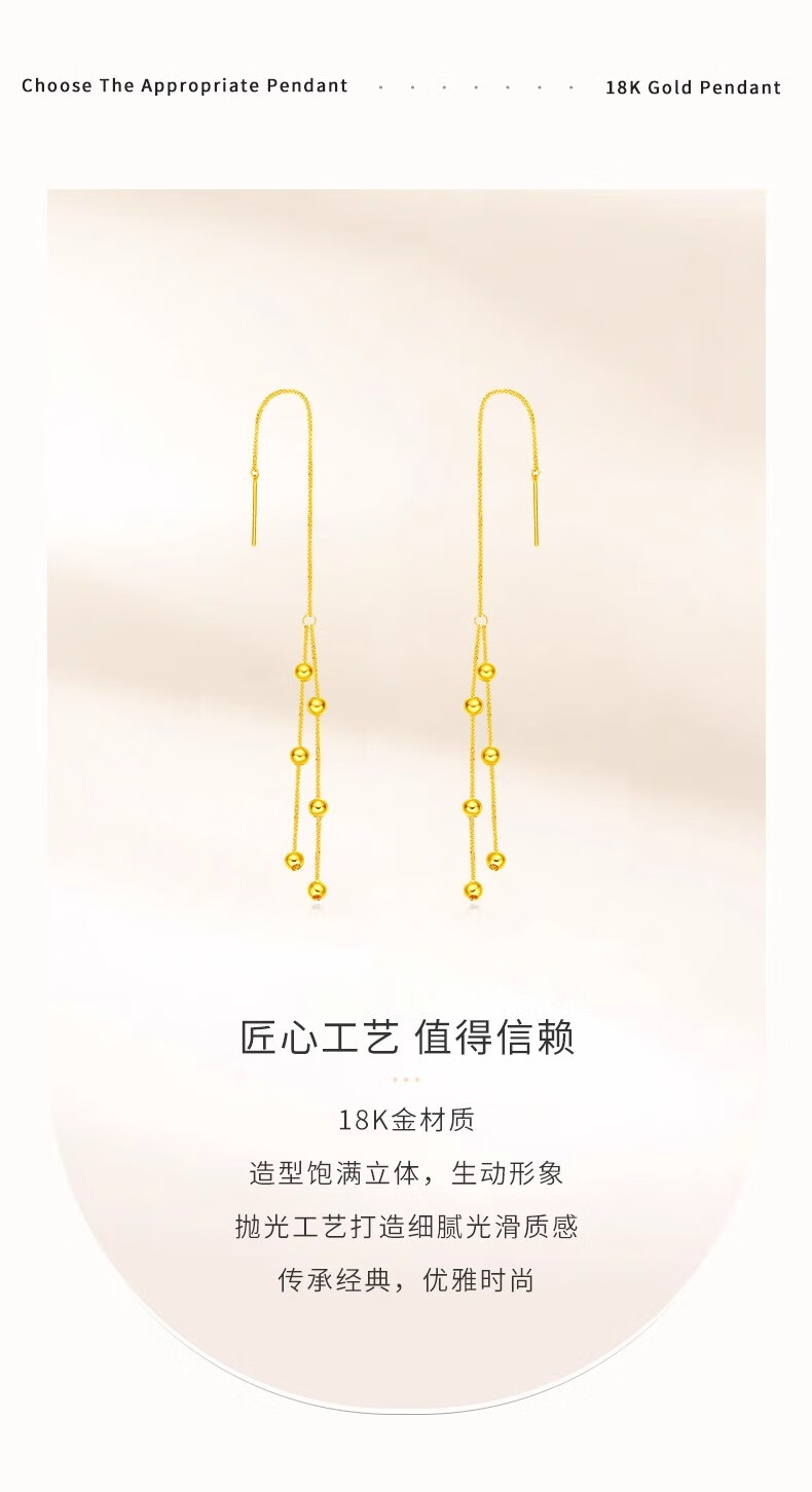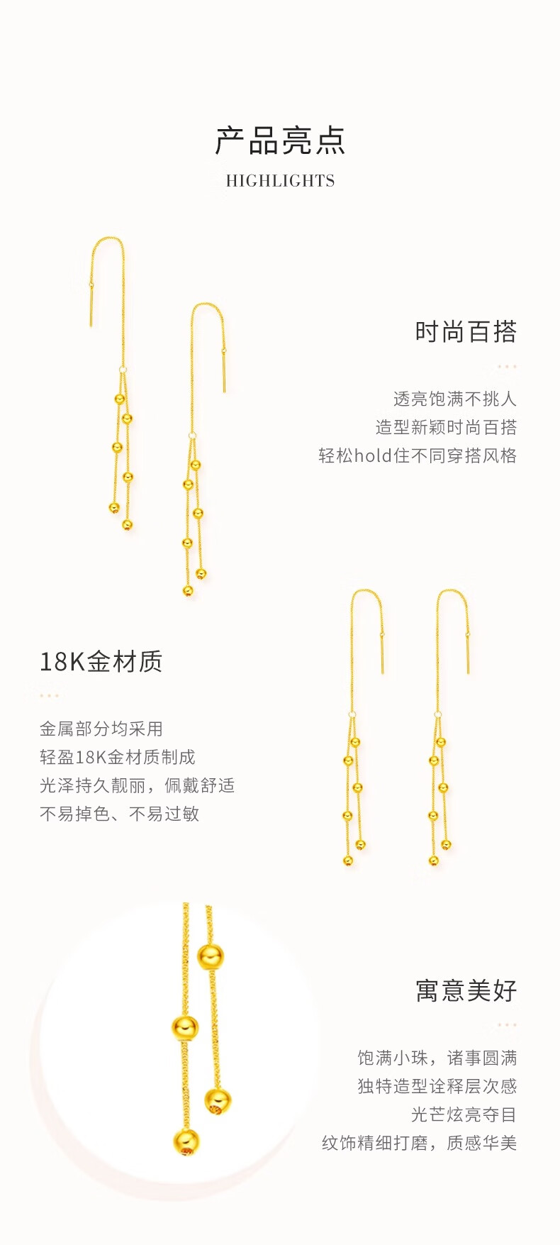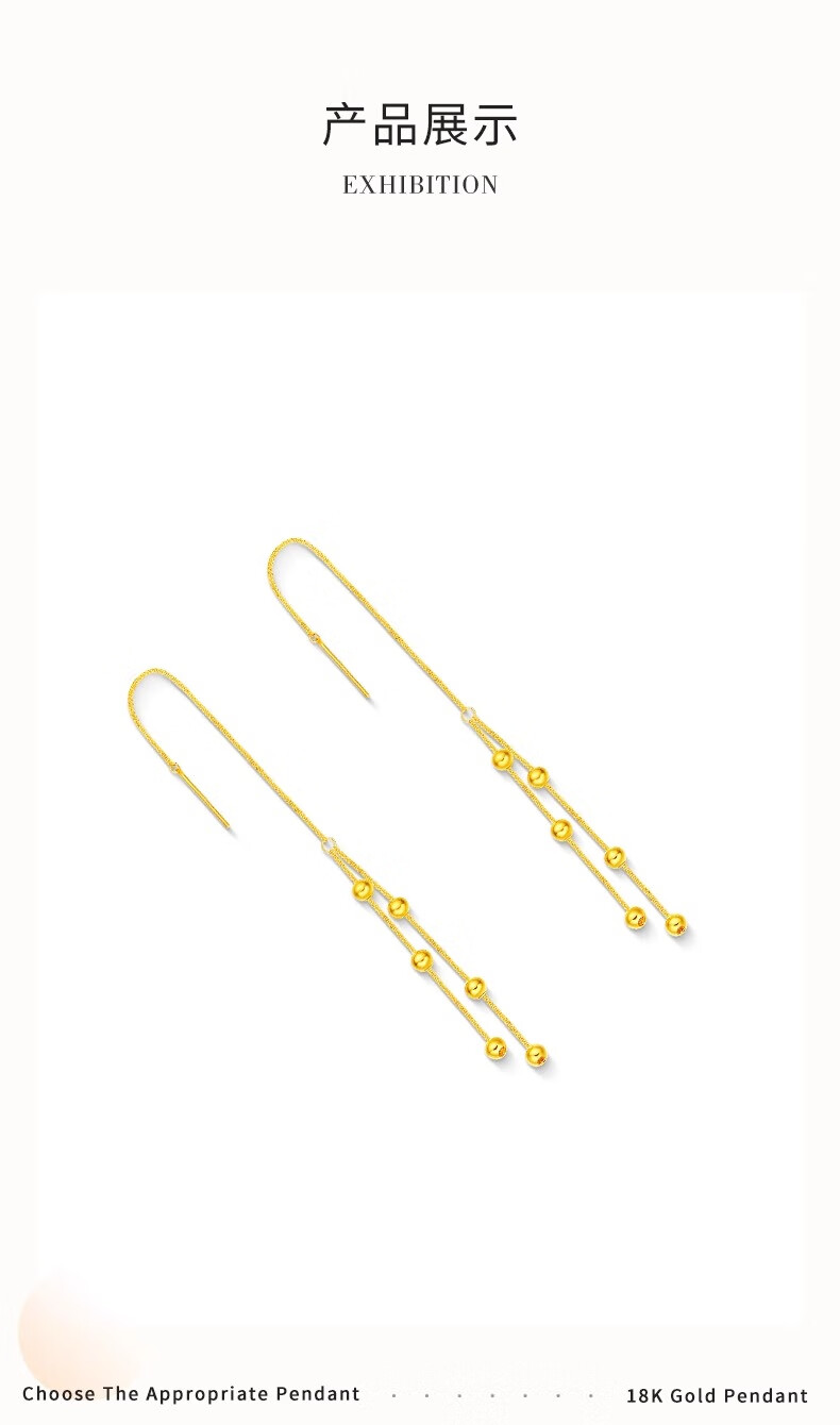 CHINA GOLD 18K gold stud earrings for women 2025 new earrings round beads tassel Valentine's Day birthday gift for girlfriend and wife 18K gold tassel ear wire about 0.5g one pair
