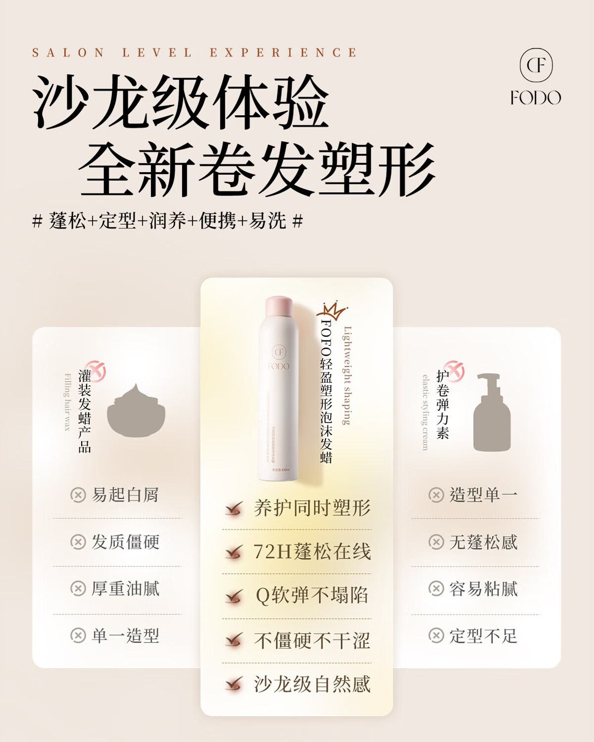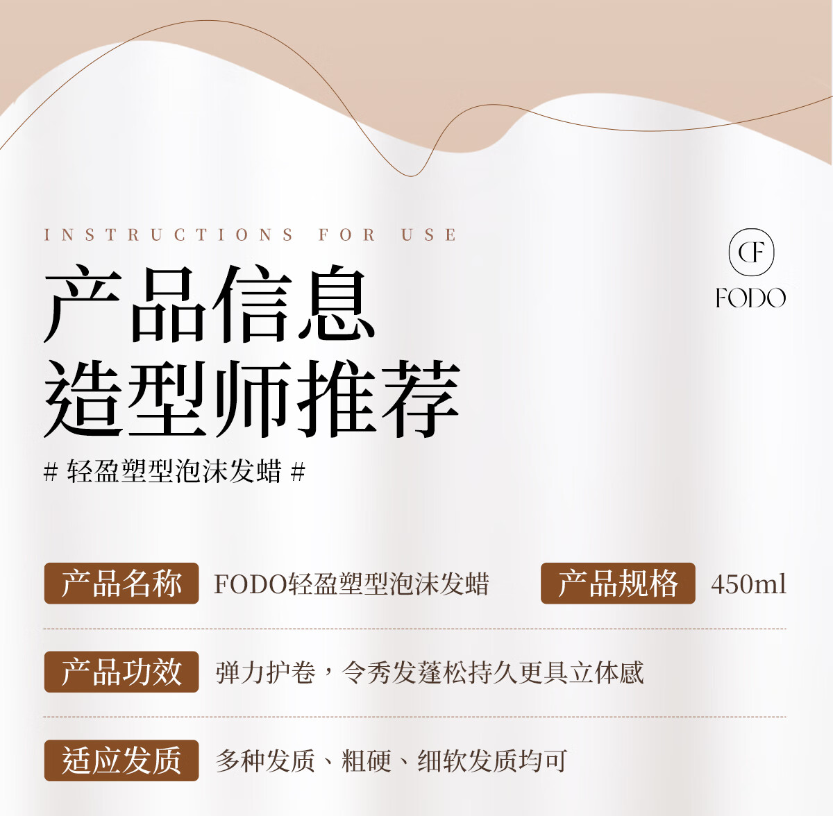FODO foam hair wax elastic female curly hair moisturizing fluffy wool volume care solution bubble perm mousse curl protection big brand same fragrance floral and fruity foam hair wax*1