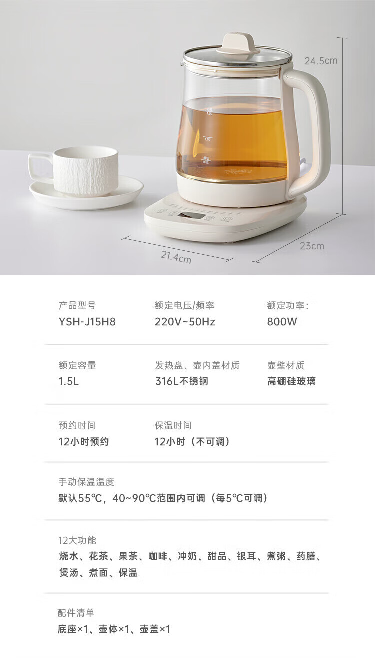 SUCPOYE health kettle, water boiler, tea kettle, constant temperature kettle, heat preservation and water boiling integrated electric kettle, scented tea, basic model, 11 levels of heat preservation, 1.5L