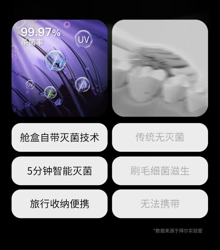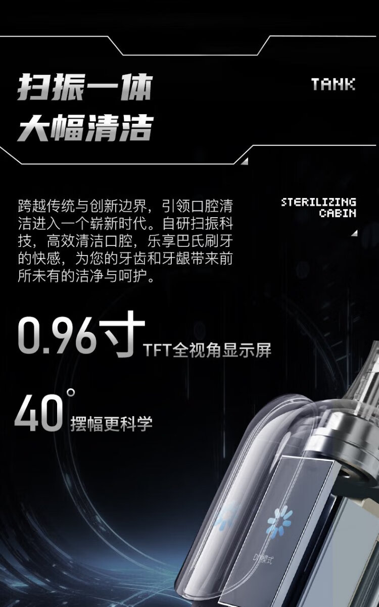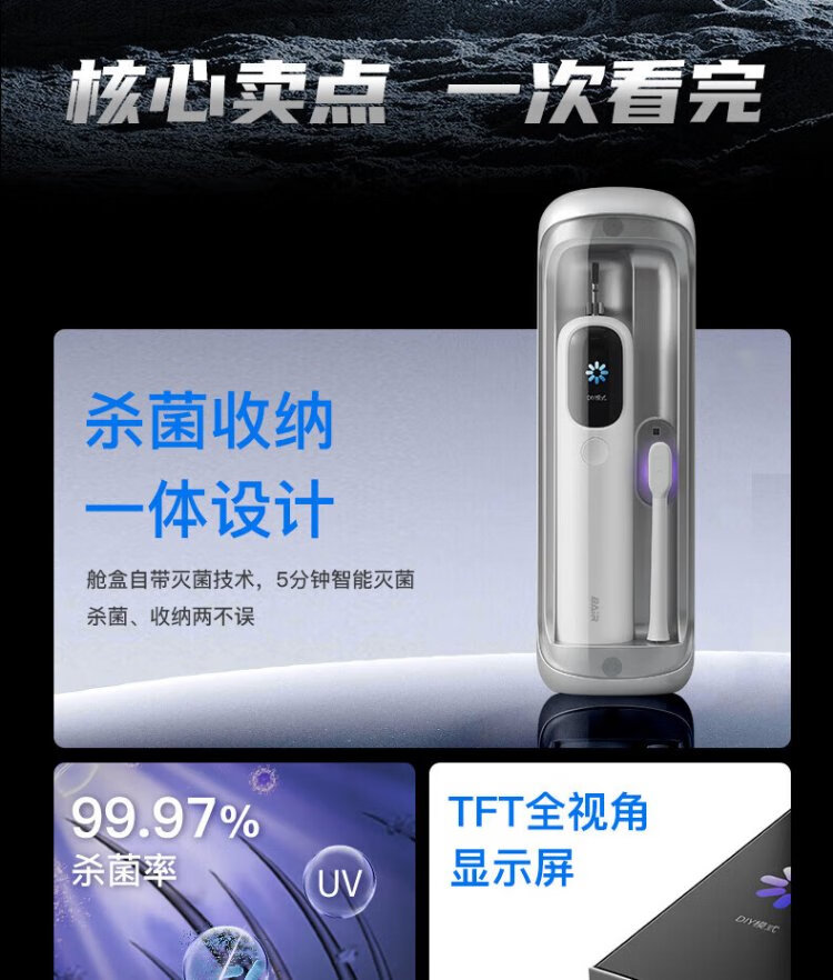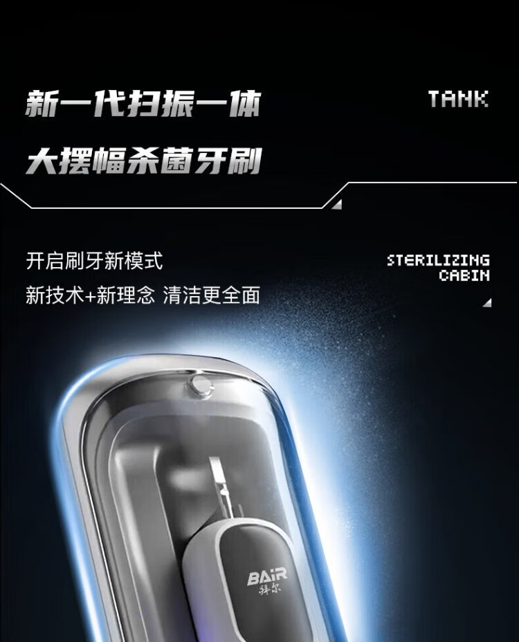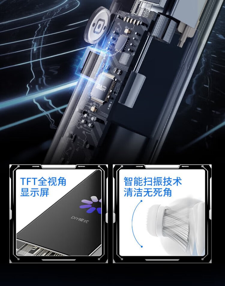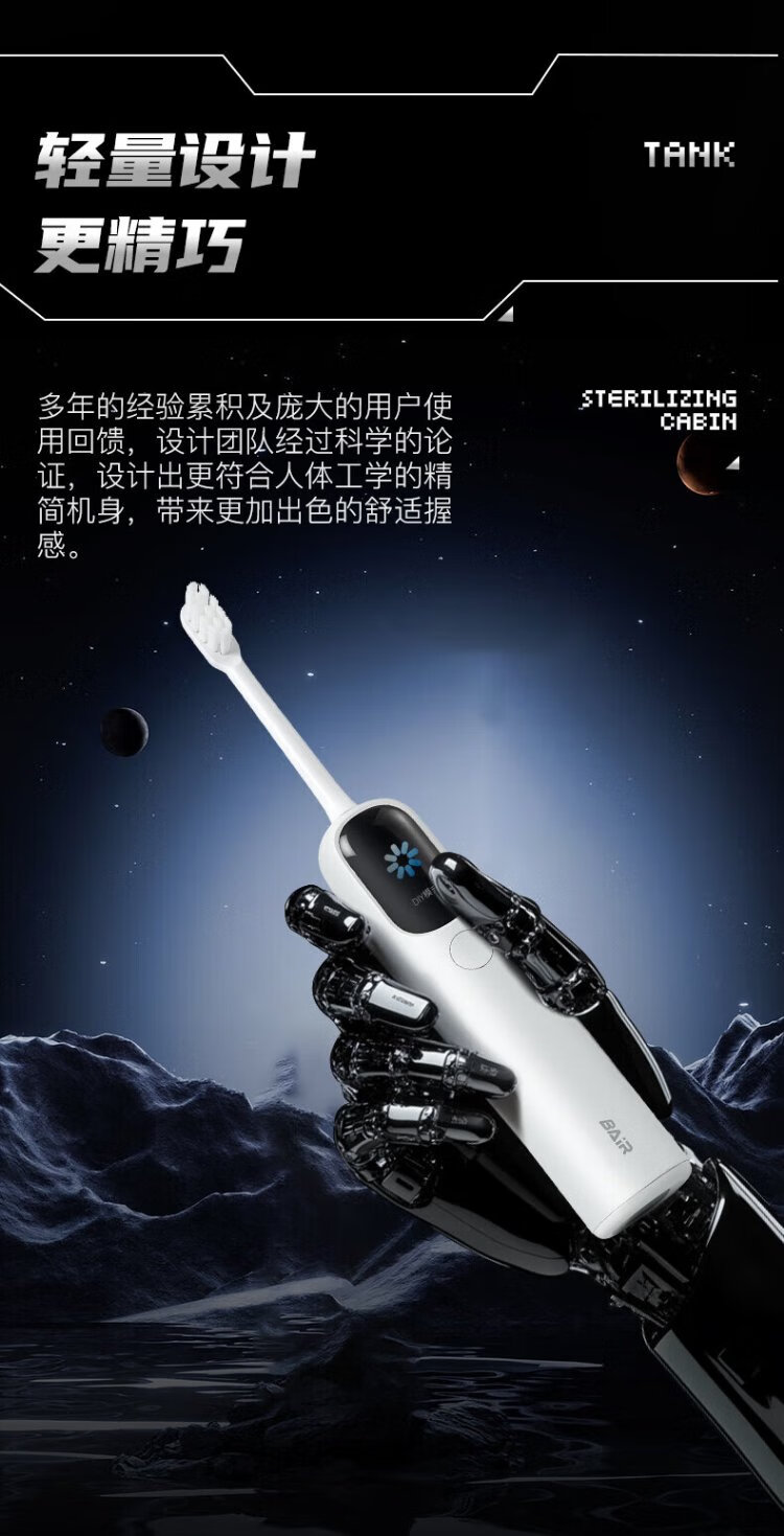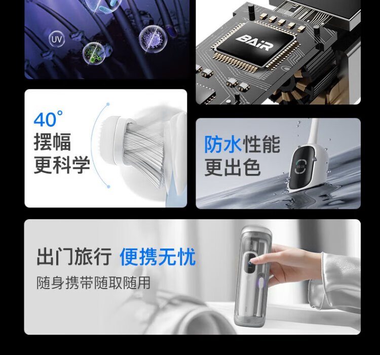 BAIR (BAIR) i6 large-screen visual smart TFT full-view display sweep-vibration sonic electric toothbrush deep cleaning adult automatic soft-bristled gum protector for girls and boyfriends new product i6 black