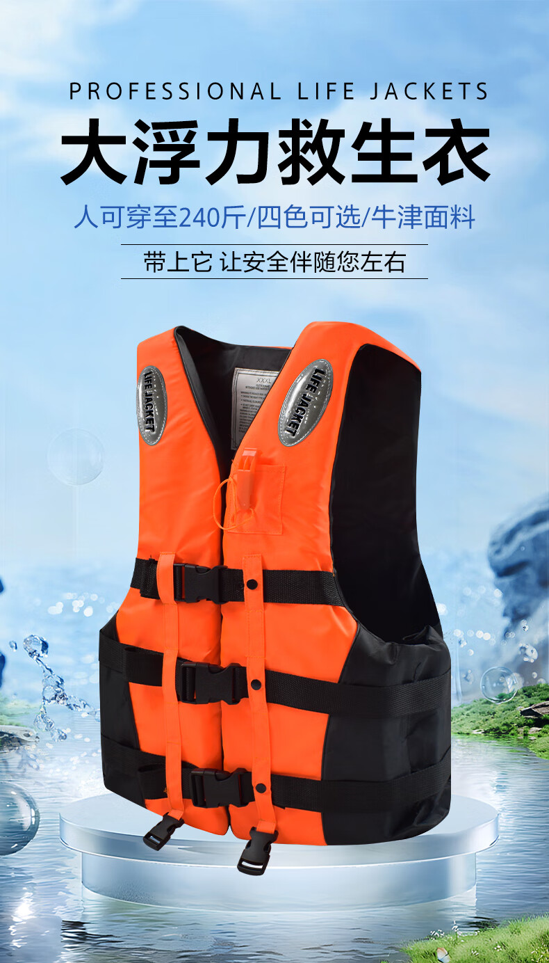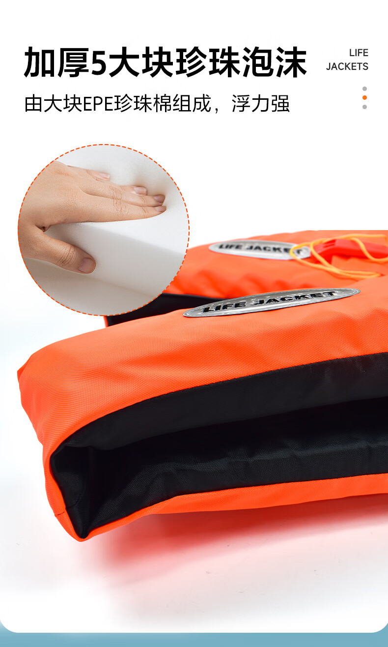 Adult life jacket portable large buoyancy professional thickened fishing boat adult and children swimming aid survival suit men orange five-point strap XXXL