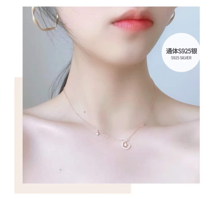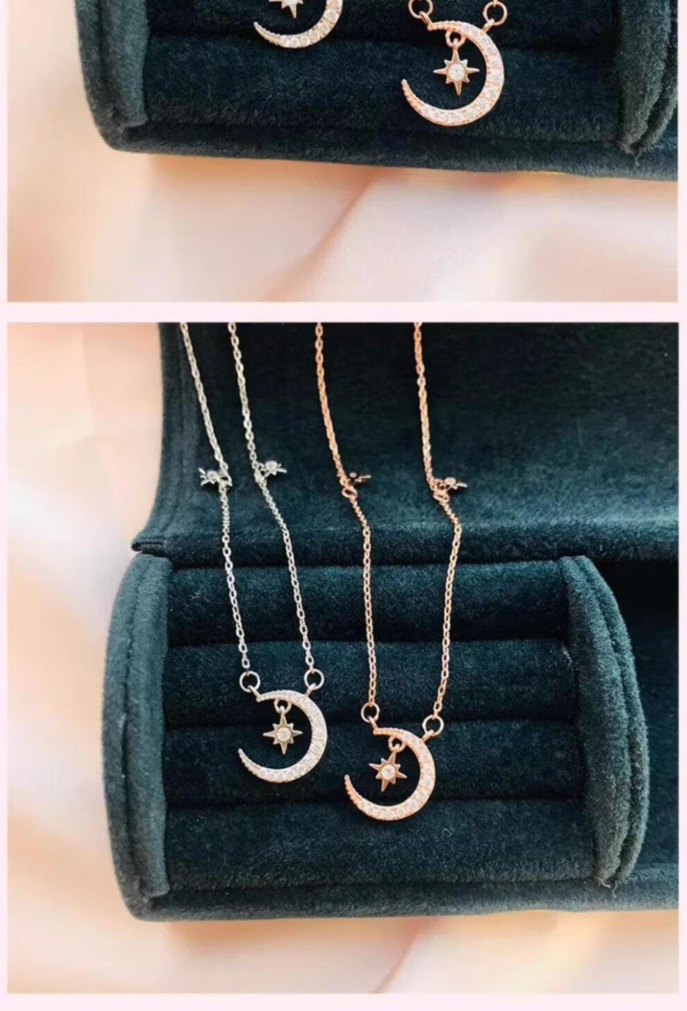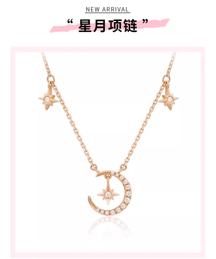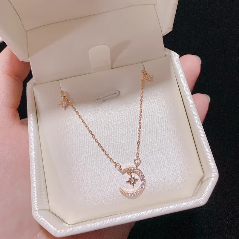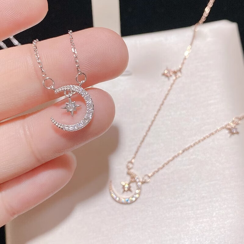 KZD Old Phoenix Pure Silver 9999 Moon Silver Necklace Accessories Women's Light Luxury Niche Style New Girlfriend's Birthday Moon Pure Silver Necklace Silver Lao Fengxiang Same Style Bow Gift Box/Certificate + Silver Polishing Cloth